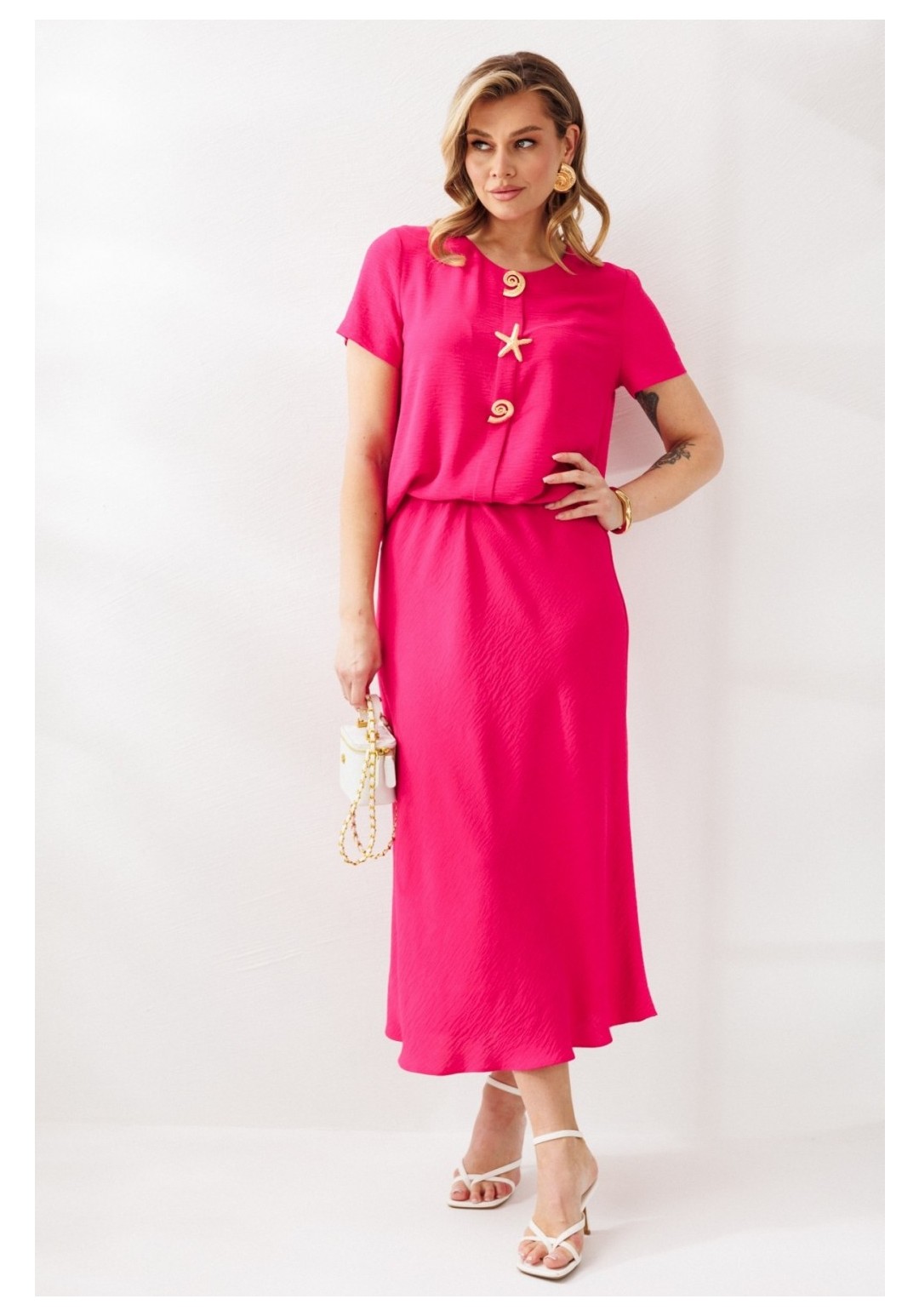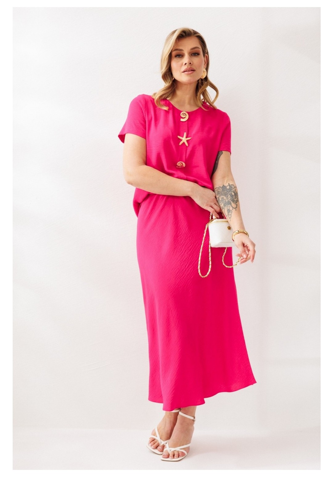 Костюм с юбкой 333 олива Мублиз — это нарядный комплект, включающий блузу и юбку, выполненные из костюмно-плательной ткани с эластичными свойствами. Коллекция бренда Мублиз предлагает вам сочетание комфорта и стиля. Блуза свободного силуэта украшена декоративными элементами и округлой горловиной, а её рукава одношовные и втачные, что добавляет элегантности. Юбка расширяется к низу и снабжена эластичной резинкой в поясе для удобной посадки. Этот оливковый костюм без подкладки идеально подходит для праздничных мероприятий, подчёркивая вашу индивидуальность и отвечая современным модным трендам. Фасон ориентирован на тёплый сезон, обеспечивая комфорт в носке.