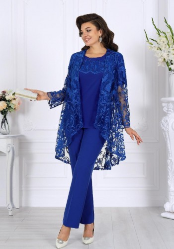 Костюм женский классический, состоит из жакета и брюк. Жакет полуприлегающего силуэта с втачным рукавом, по низу рукава шлица с пуговицами. Спереди два прорезных кармана. По спинке шлица, изделие на подкладке с дизайном (дизайн может меняться). Брюки-зауженные книзу 7/8 длины, с боковыми карманами, на поясе, спереди застегивается на молнию и пуговицы. Длина жакета: (42-48) 68 см, (50-54) 69 см, (56-60) 69,5 см. Длина рукава 62 см. Длина брюк: (42-48) 96 см, (50-54) 97 см, (56-60) 98 см.