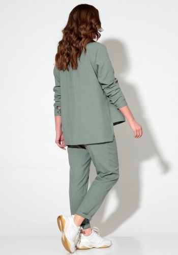 Яркий акцентный костюм - идеальный пример сочетания комфорта и стиля. Нарядно-повседневный костюм, состоящий из блузона и брюк, выполнен из смесовой ткани с содержанием вискозы, подчеркнет индивидуальность и неповторимость образа. Блузон полуприлегающего силуэта асимметричного кроя. Передняя часть цельная, слева с цельнокроеным длинным рукавом и справа с удлиненной линией плеча, чуть приспущенной, мягко закрывающее предплечье. Спинка цельная, слева с цельнокроеным рукавом и справа с удлиненной линией плеча, закрывающее предплечье. Горловина асимметричная: цельнокроеная стойка справа, переходящая слева в плечевую линию. Рукав свободный длинный с мягкими складками по низу и фиксируемый манжетой с двумя декоративными пуговицами. По центральному верхнему шву предусмотрен высокий разрез. Низ асимметричный, заканчивающийся слева в боковом шве небольшим разрезом. Брюки широкие фантазийного кроя со встречной складкой спереди от пояса. Высота посадки стандартная. В верхней части бокового шва предусмотрены функциональные карманы. Застежка боковая на потайную молнию слева. Задняя часть пояса на резинке, что придает изделию дополнительный комфорт при носке. Длина блузона (по середине спинки) ~ 70 см. Длина брюк с поясом ~ 108 см.