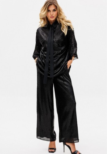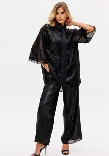 Костюм женский, состоящий из жакета и брюк. Жакет полуприлегающего силуэта, длиной ниже линии бедер. Спинка с вертикальными рельефами. Жилет прилегающего силуэта с центральной бортовой застежкой на 4 прорезные петли и пуговицы. Перед - с талиевыми вытачками и отрезным бочком. Спинка со средним швом и рельефами от проймы до низа, в которые на уровне талии втачаны хлястики. Хлястики с запахом; закреплены на 2 пуговицы. Вырез горловины V-образный. Жилет на подкладке. Перед с центрально-бортовой застежкой на 2 петли-пуговицы и воротником пиджачного типа, вертикальными рельефами, доходящими до линии кармана в рамку с клапаном. Рукава втачные двухшовные. Жакет на подкладке. Брюки классические с центральной застежкой на тесьму молнию с гульфиком и откоском; с притачным поясом со шлевками, застегивающимся на 1 прорезную петлю и пуговицу. Задняя часть пояса - на резинке. ПП брюк с таллиевыми вытачками и боковыми карманами. ЗП брюк с 2-мя парами таллиевых вытачек. Длина жакета - 71,2 см. Длина рукава жакета - 62,7 см. Длина жилета — 49,5 см. Длина брюк - 105 см.