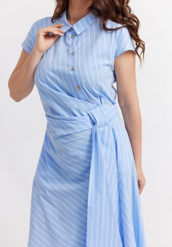 Шикарный костюм из трендовой полоски. Жакет полуприлегающего силуэта, двубортный, с застежкой на 2 пуговицы, на подкладке, с карманами и клапанами. Рукав длинный двухшовный. Брюки прямые, с карманами наклонными к боковым швам. Пояс, застежка на петлю-пуговицу. Длина жакета 67см, длина рукава 61см, длина брюк 111см.