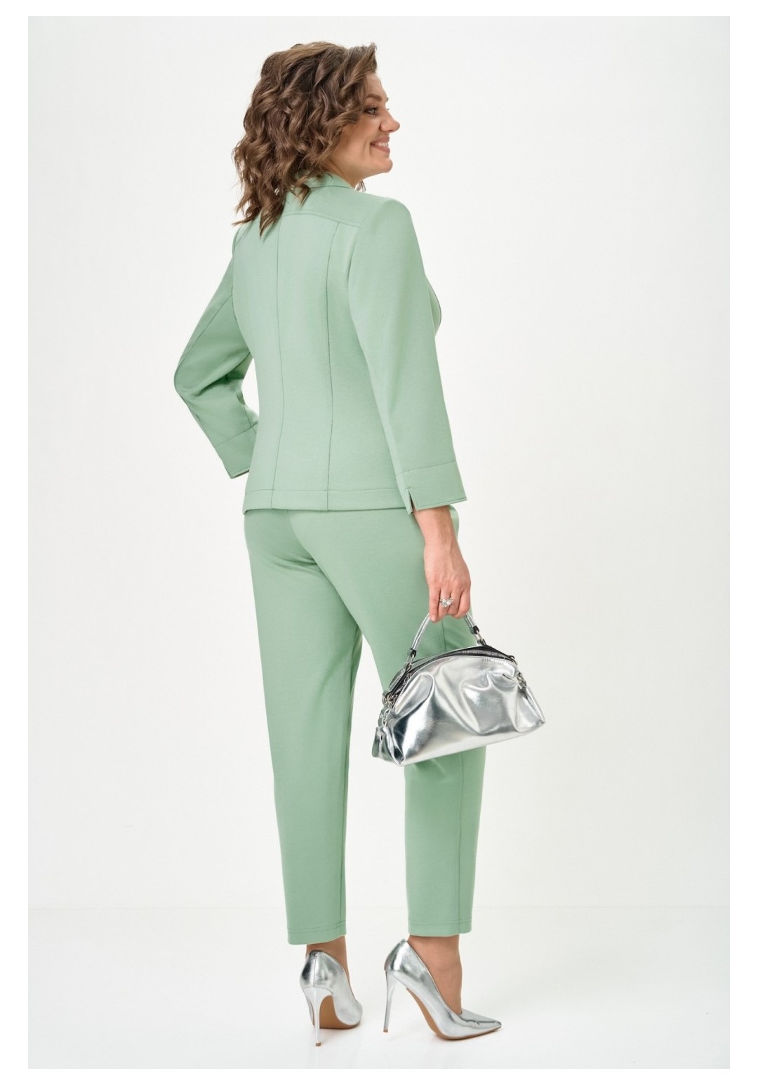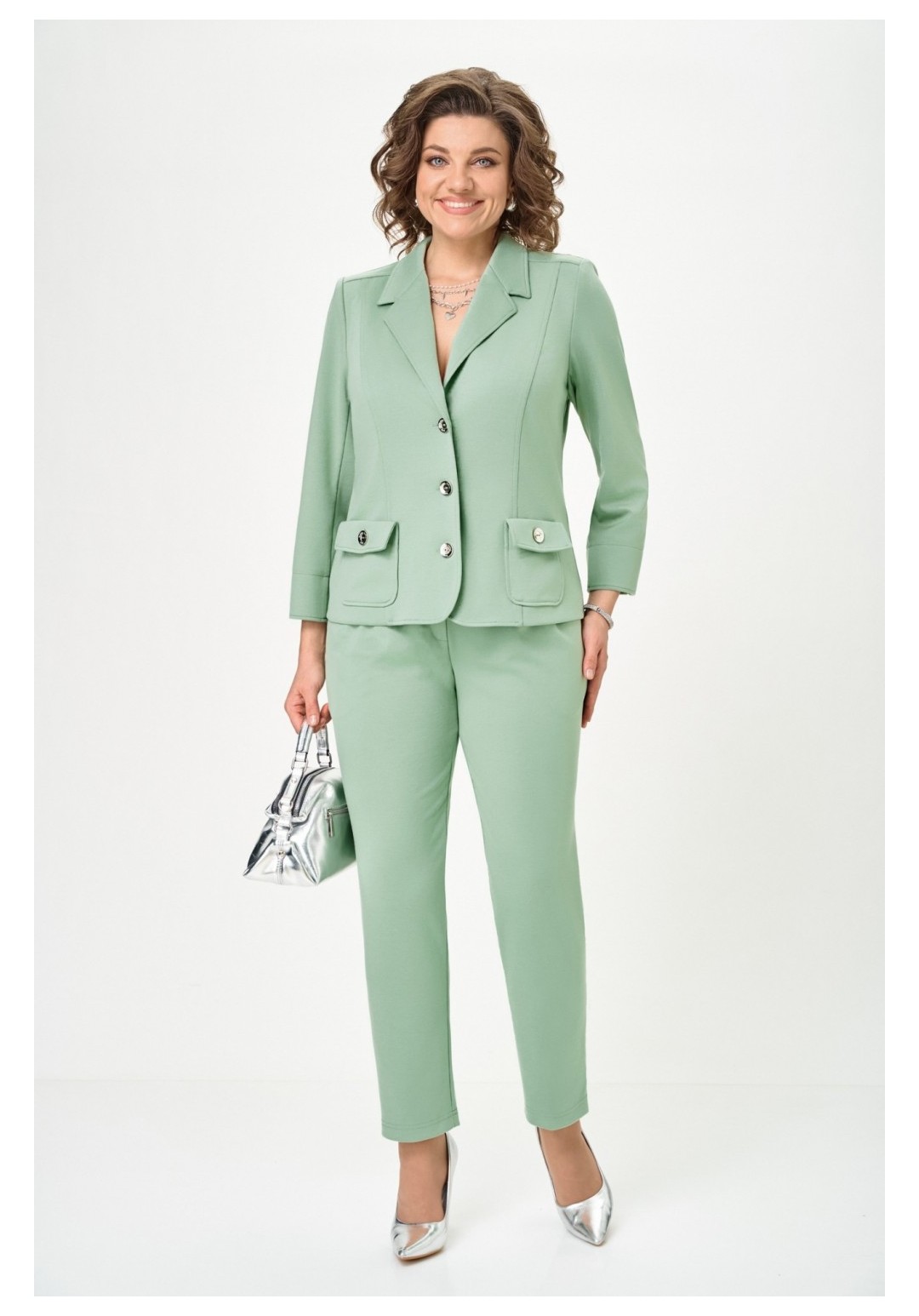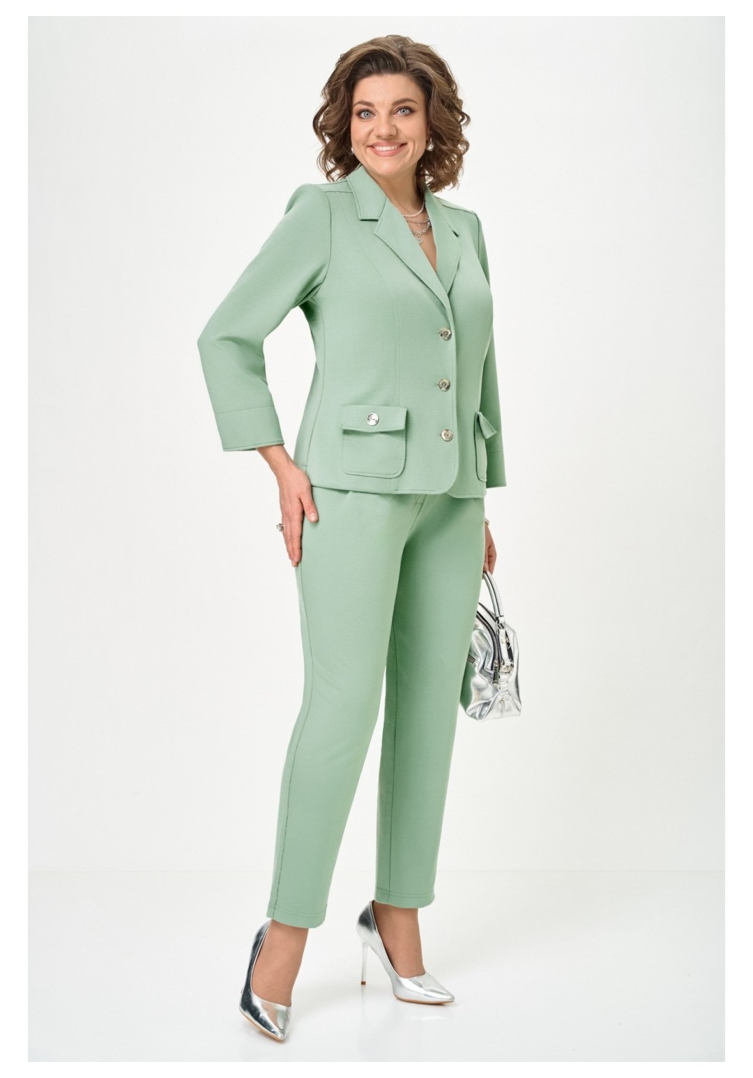 Костюм брючный 2848 оливковый идеальный выбор для любых случаев. Этот брючный костюм выполнен из смеси вискозы и полиэстера, что обеспечивает комфорт и легкость в любом сезоне. Жакет полуприлегающего силуэта с длиной 63 см и рукавом три четверти на пуговицах станет отличным выбором для офиса или прогулки. Практичные накладные карманы добавляют функциональности, а пояс на резинке в брюках средней посадки подчеркивает свободу движений. Оливковый цвет и современный стиль позволят вам выглядеть стильно как в офисной, так и в повседневной жизни. Длина жакета - 63см, длина рукава - 60см, длина брюк - 104см.