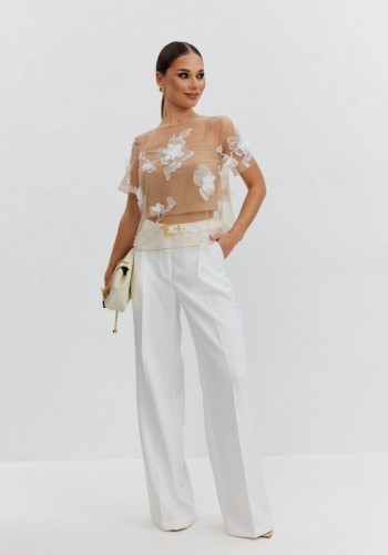 Женственный и элегантный, нарядно-повседневный комплект, состоящий из жакета прямого силуэта и прямых широких брюк, станет идеальным выбором, как для офиса, так и для праздничных, и официальных мероприятий. Красивый двубортный Жакет на запах с пуговицами, цельнокройным рукавом , подходит для девушек и женщин любого возраста. По краю борта отделочный кант, на талии декоративный пояс со шлевками. Низ рукава и полочки украшен кружевом. Застежка на две пуговицы. Брюки прямого силуэта на притачном поясе с эластичной лентой. Средней посадки. С боковыми карманами . Создайте свой уникальный стильный лук и будьте в тренде в одежде от LADY SECRET!Длина жакета -73см. Длина рукава от горл-55см. Длина брюк-108см.