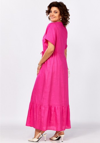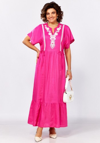 Костюм двухпредметный: жакет, брюки. Жакет средней длины, полуприлегающего силуэта, выполнен на основе классического кроя. Впереди рельефы от проймы, отложной воротник и лацканы, застежка на две пуговицы, внутренние карманы в рамочку + клапан. По спинке центральный шов и рельефы от проймы. Рукав длинный, на шлице четыре пуговицы. Жаке на подкладке. Брюки длинные, прямые, внизу по боковым швам высокие шлицы, что придает брюкам зрительно небольшое расширение. Сверху притачной пояс с резинкой у боковых швов, застежка молния + пуговица.