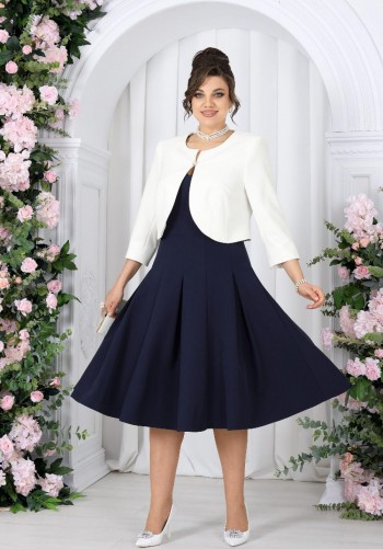Костюм, состоящий из джемпера и брюк. Джемпер прямого силуэта из трикотажного полотна. Воротник - широкая стойка. Горловина с застежкой на петлю и пуговицу. Рукав одношовный втачной, чуть спущена линия плеча. По низу джемпера в боковых швах разрезы. Брюки прямого силуэта из трикотажного полотна. По верху брюк притачной пояс, по переду застежка молния в среднем шве, карманы в боковых швах и декоративные складки. На задних половинках брюк прорезные листочки. По задним половинкам брюк на поясе резинка от вытачки до вытачки. Обращаем ваше внимание, что фурнитура может отличаться от фото. Подходит на рост 164-170 см. Длина джемпера (44-48р – 58см)(50-54р - 61см). От горловины (44-48р – 74см)(50-54р - 75см). Длина брюк (44-48р – 112+3,5см пояс)(50-54р - 113+3,5см пояс).