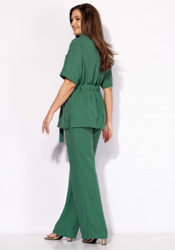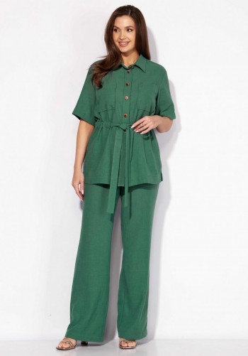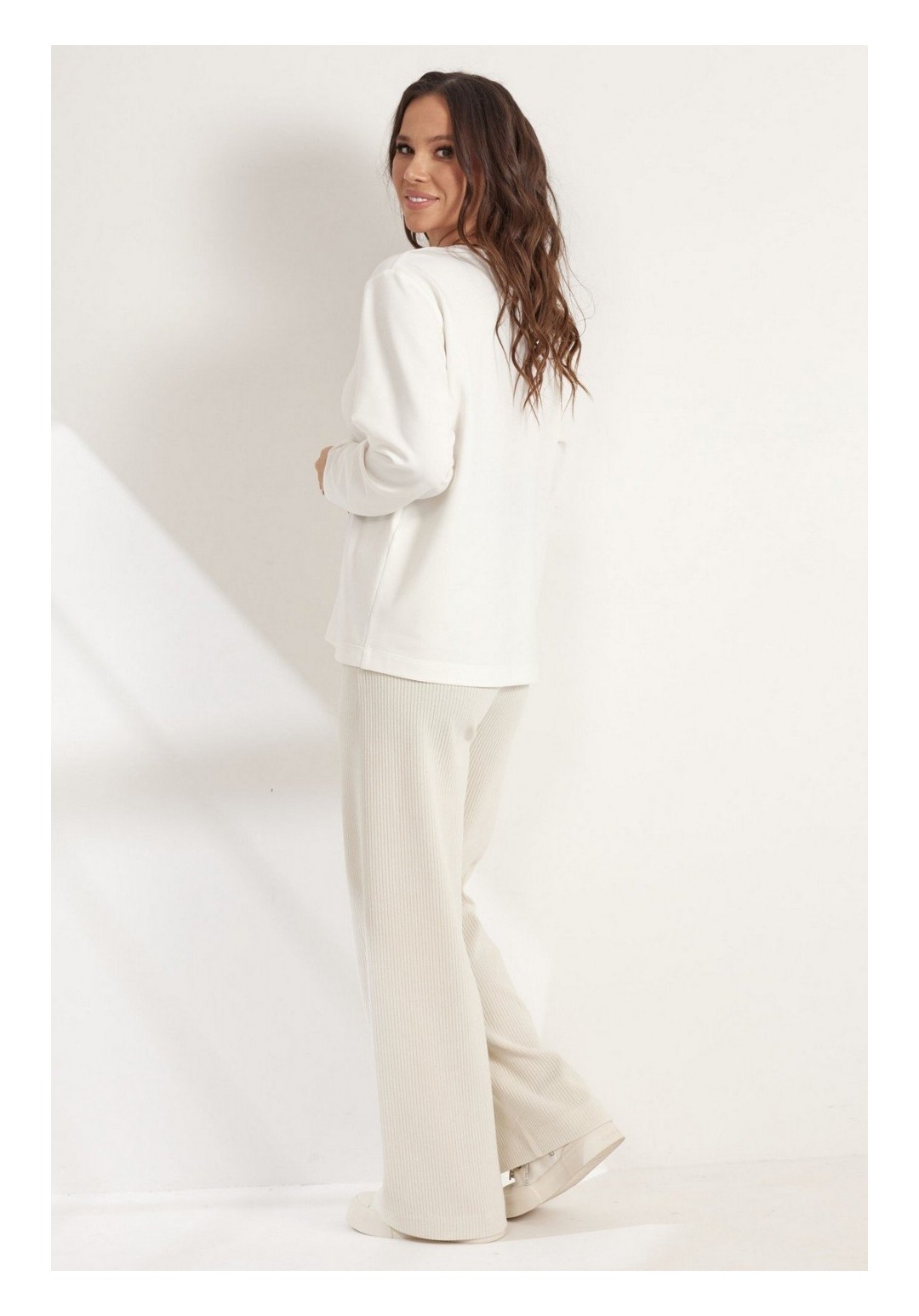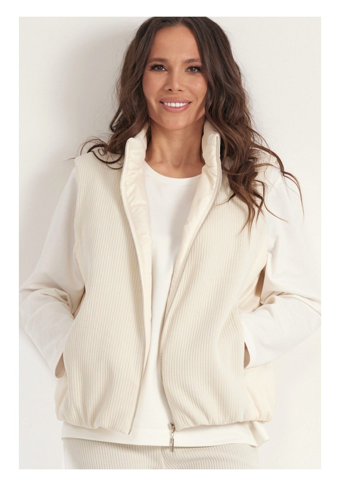 Нежный и уютный комплект из утепленного жилета и брюк, выполненных из фактурного трикотажного полотна(штрукс), и джемпера. Жилет свободного прямого кроя с центральной застежкой на металлическую молнию. Горловина обработана стойкой. Перед жилета выполнен из трикотажного полотна, спинка выполнена из плащевой ткани. Жилет дополнен удобными боковыми карманами с застежкой на молнию. Джемпер свободного прямого кроя со слегка спущенным рукавом. Брюки прямого свободного кроя, с притачным поясом, дополненным эластичной тесьмой. Посадка средняя. По бокам брюки дополнены удобными карманами. Длина жилета от плечевого шва 62см. Длина джемпера от плечевого шва 63см. Длина рукава 60см. Длина брюк по боковому шву 107см.