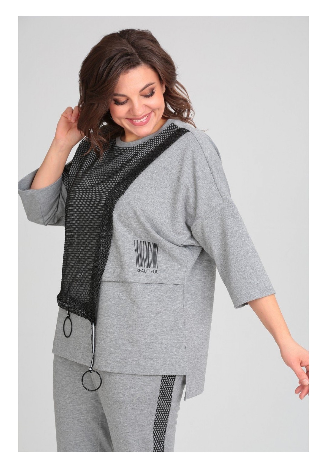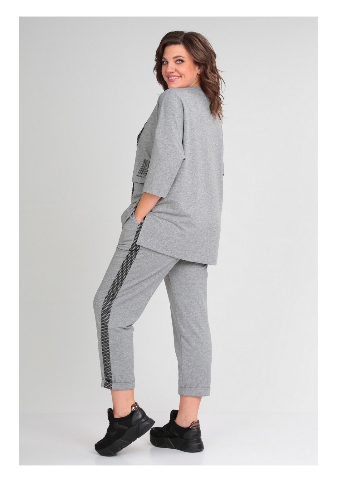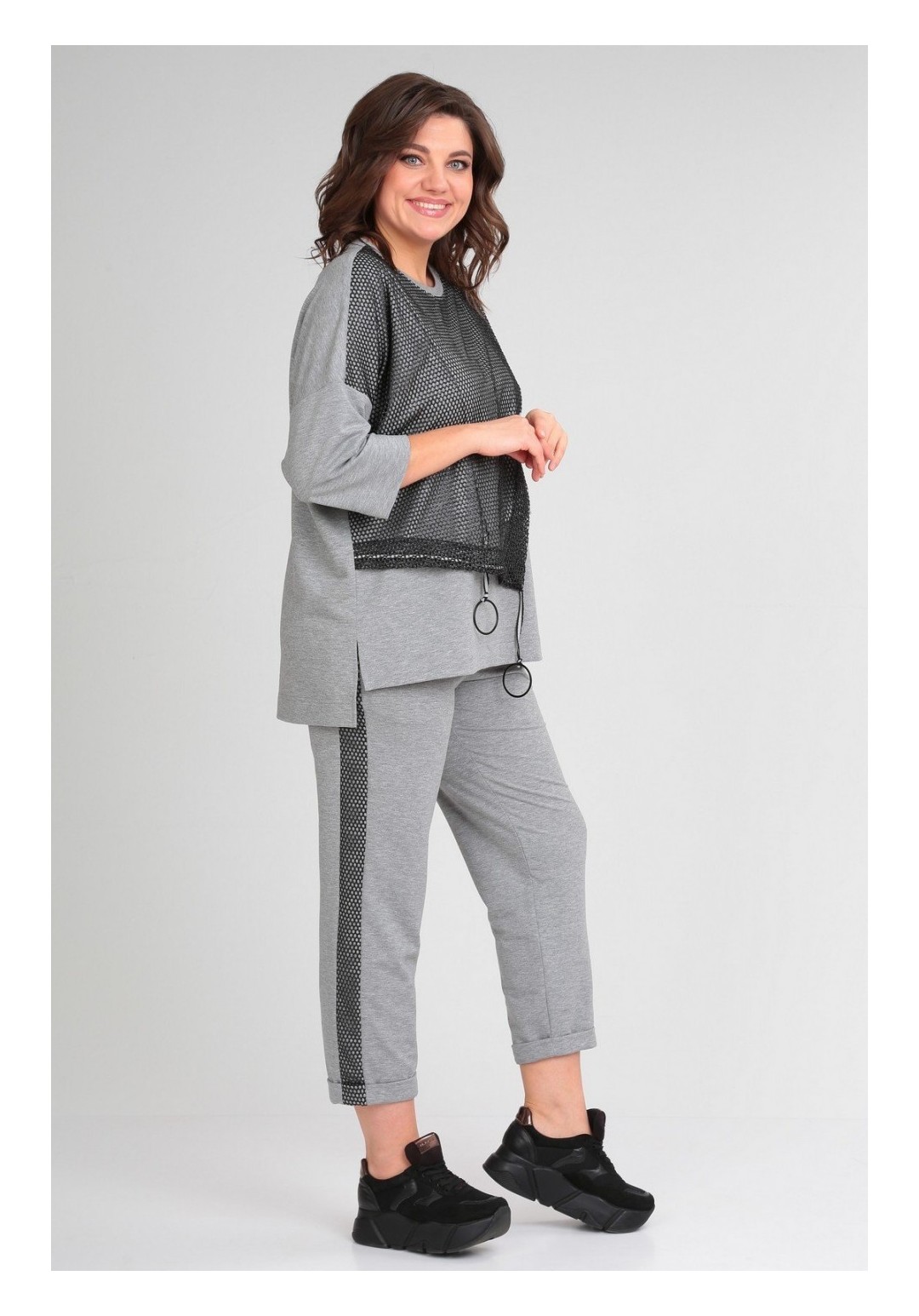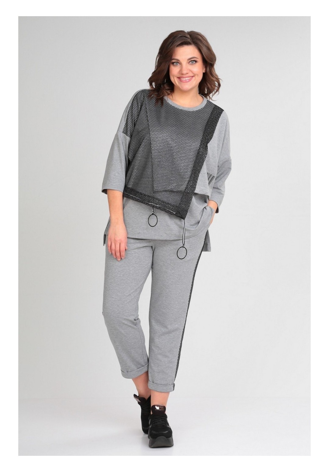 Удобный костюм выполнен из мягкого и уютного трикотажа. Брюки укороченные, свободного кроя с отворотом, будут прекрасно смотреться как на высоких, так и на миниатюрных девушках. В брюках функциональные боковые карманы, пояс на резинке, украшены крупной сеткой на лампасах. Джемпер свободного кроя, плечо приспущено, рукав ¾, украшен принтом в виде штрихкода. Перед короче относительно спинки, по бокам разрезы, украшением служат отлетные детали со стяжками на крупных кольцах по низу. Сложный крой и функциональность костюма делает его особенным и самостоятельным. Оба изделия можно смело комбинировать с другими вещами и обувью Вашего гардероба. Длина брюк по боковому шву 90 см +-1 см., по шаговому шву 63 см +-1 см. Длина джемпера по спинке от горловины 77 см +-1 см., по переду 68,5 см +-1 см. Длина рукава от горловины 58 см. Изделие подойдет на рост 170 см.