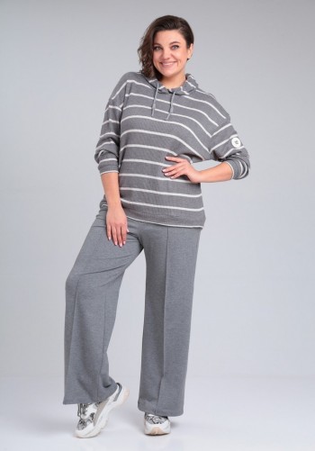 Костюм женский брючный ,из хлопковой джинсовой ткани для повседневной носки. Бомбер укороченный с асимметричным низом, центральной застежкой на молнию по переду и двумя накладными карманами, спинка с центральным швом и разрезом по низу. Воротник — широкая стойка, плечо спущенное, рукав втачной, одношовный, на резинке по низу. На спинке — цельнокроенная кулиса с продетым от бокового шва шнурком и фиксатором. Брюки- бананы, 7/8 , по верху на притачном поясе с резинкой. По переду брюки с застроченными односторонними складками, застежка на вылет, имеются боковые карманы в швах, и задние накладные. Оба изделия смело можно сочетать с другими вещами вашего гардероба и любой по стилю обувью. Длина изделия по спинке 62 см(+-1 см), длина рукава от горловины 70 см/(+-1 см), длина брюк по боковому шву 95 см(+-1 см), по шаговому 64 см(+-1 см). Изделие подойдет на рост 170см.