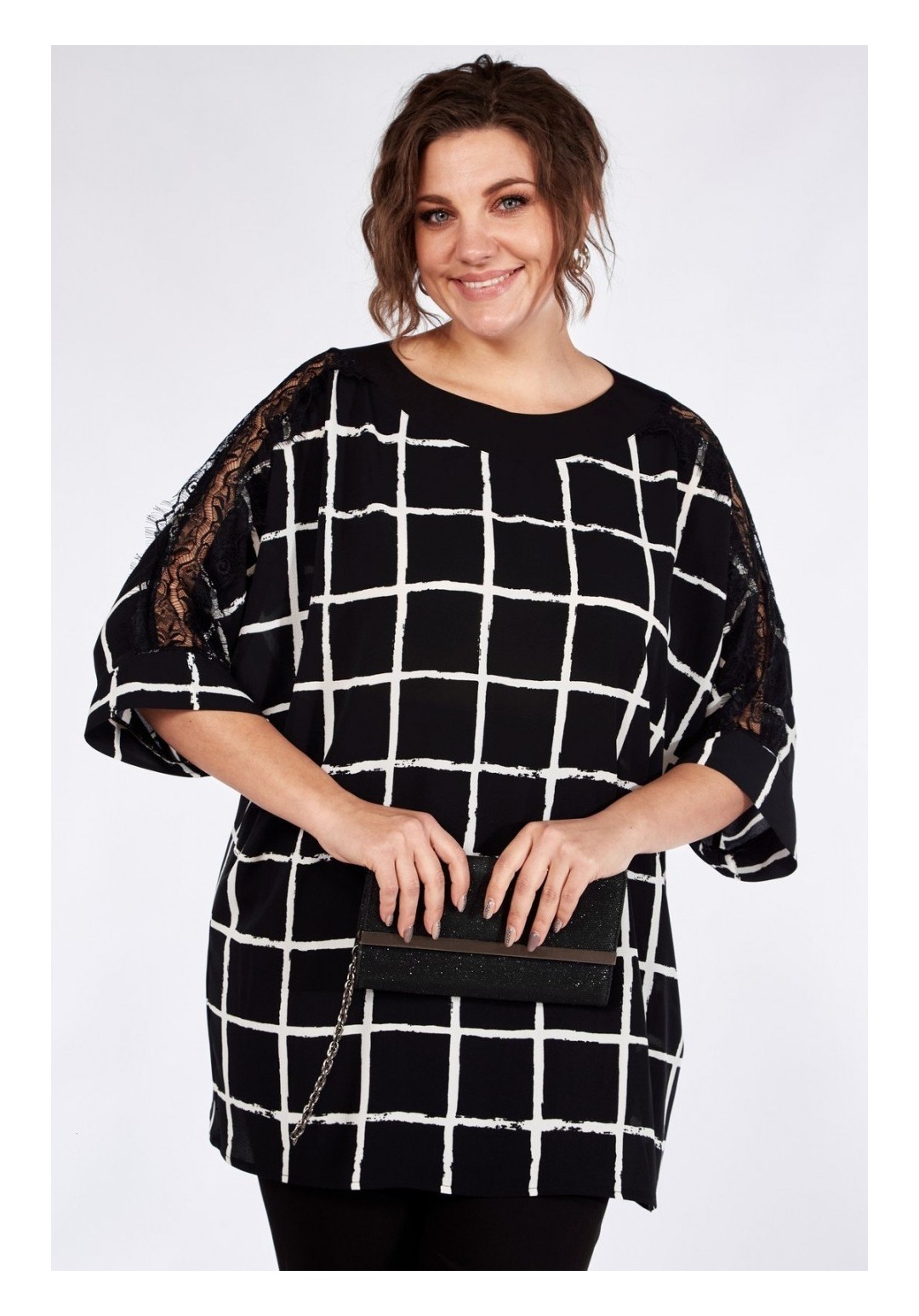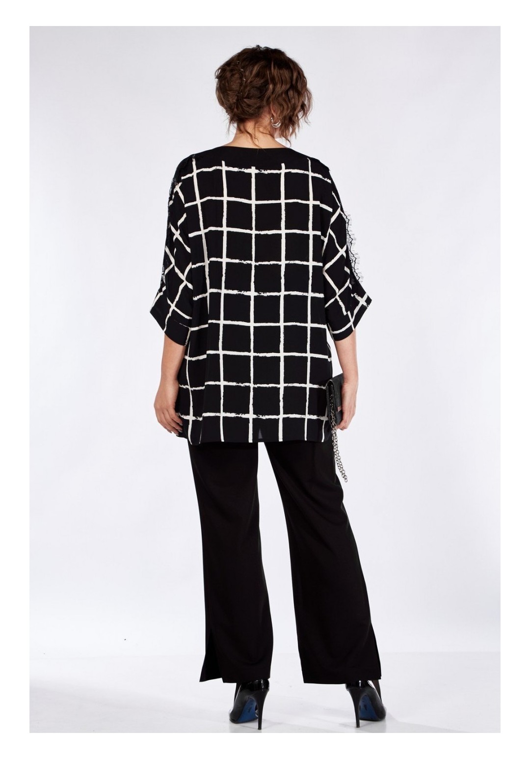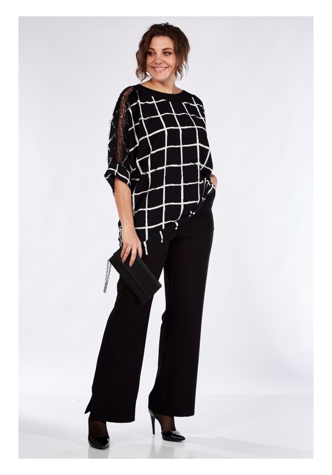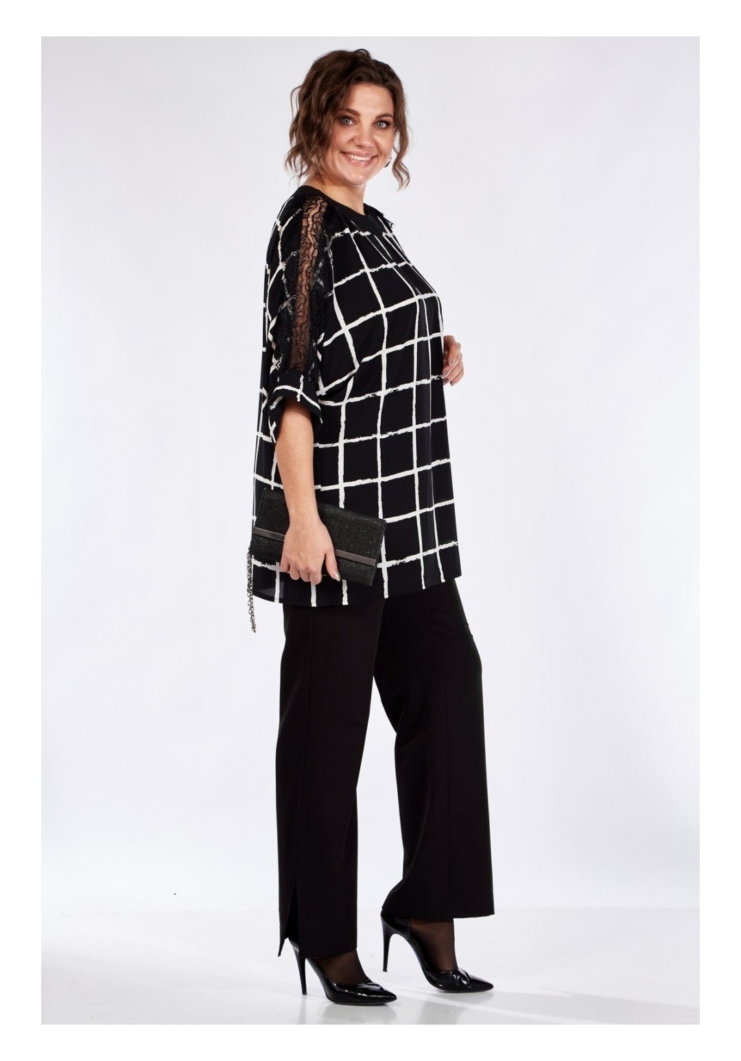 Эффектный и нарядный женский брючный костюм из двух предметов станет незаменимым в Вашем гардеробе для любого торжества. Блуза из шифона, свободного облегания с кружевными вставками на рукавах, прекрасно подчеркнет ваши достоинства, спрятав недостатки. Вырез горловины — лодочка, рукав цельнокроеный 3/4 с приточной манжетой по низу. Брюки-палаццо прямые с разрезами по бокавым швам, на притачном поясе, с двумя боковыми карманами по переду и центральной застежкой на молнию. Длина блузы по спинке 76 +-1 см., длина рукава 48 +-1 см. Длина брюк по боковому шву 109 +-1 см., по шаговому шву 78 +-1 см. Изделие подойдет на рост 170 см.