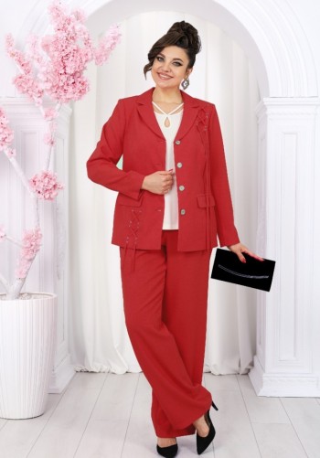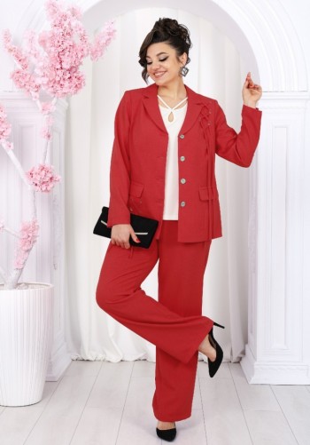 Универсальный женский брючный костюм из двух предметов станет незаменимым для Вашего гардероба в наступающем сезоне. Оба предмета данного комплекта отлично сочетаются между собой и смело могут создавать комбинации с другими вещами. Блуза оверсайз с круглой горловиной на стойке. Перед с центральной потайной застежкой планкой на петли-пуговицы. Спинка цельная со встречной складкой из-под стойки. Плечо спущено с втачным рукавом 3/4 и широкой подгибкой. Брюки длинные свободного кроя на притачном поясе с резинкой. По переду в боковых швах функциональные карманы. Комплект выполнен из приятной на ощупь вискозной ткани. Длина брюк по боковому шву 112+-1 см., по шаговому шву 83 +-1 см. Длина блузы по спинке 70 +-1 см., длина рукава от горловины 61 см. Изделие подойдет на рост 170-176 см.