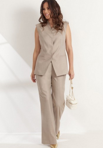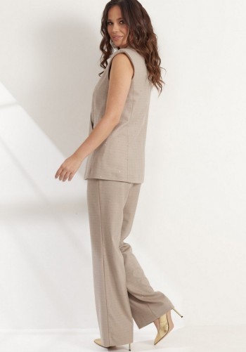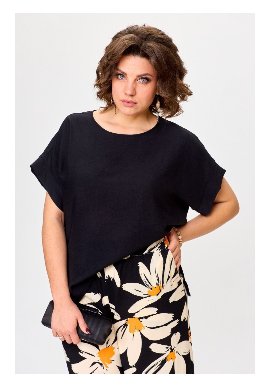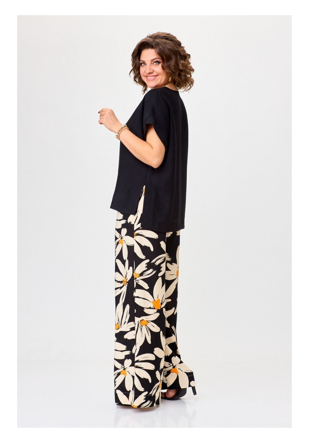 Комплект женский брючный повседневный, будет актуальным, как и для рабочих будней, также и торжественных мероприятий. Комплект свободного кроя, выполнен из легкой струящейся вискозной ткани. Блуза с коротким спущенным рукавом, круглой горловиной, ассиметричным низом, где спинка длиннее переда, по бокам имеются разрезы. Брюки- палаццо, на поясе с резинкой, наклонные карманы в боковых швах. Длина блузы по спинке 66+-1 см, длина рукава от горловины 29+-1см, длина брюк по боковому шву 117+-1 см, длина брюк по шаговому шву 82 +-1 см. Изделие подойдет на рост 170 см.