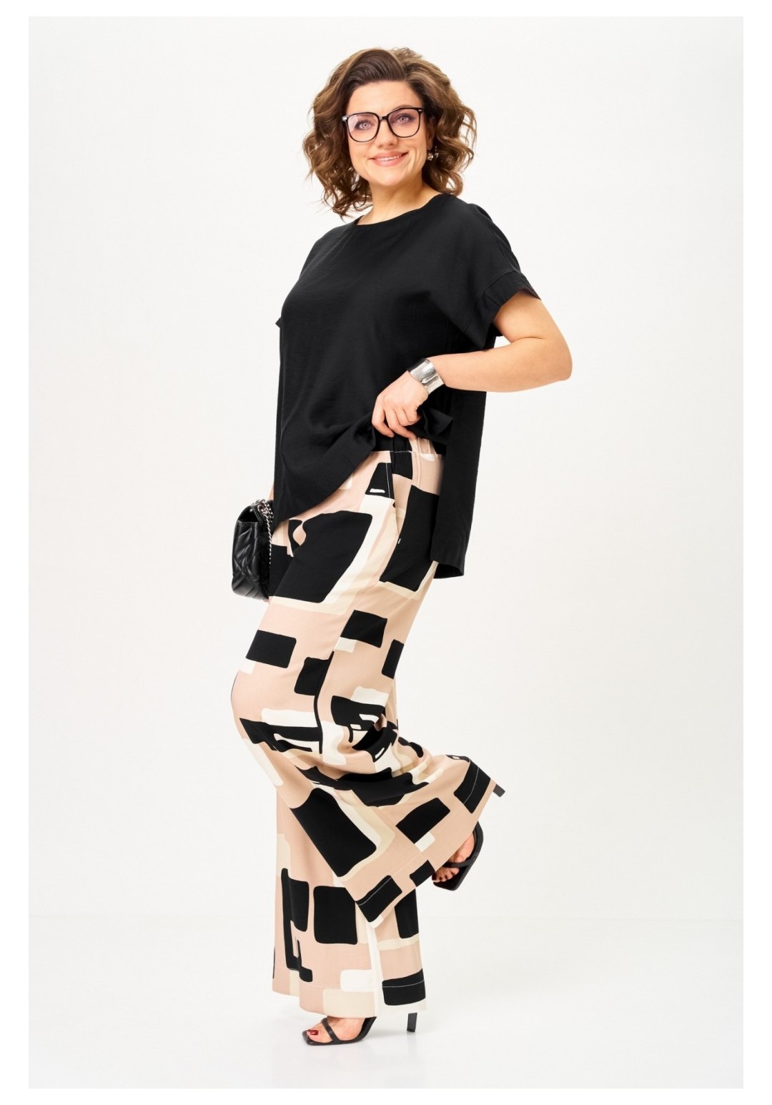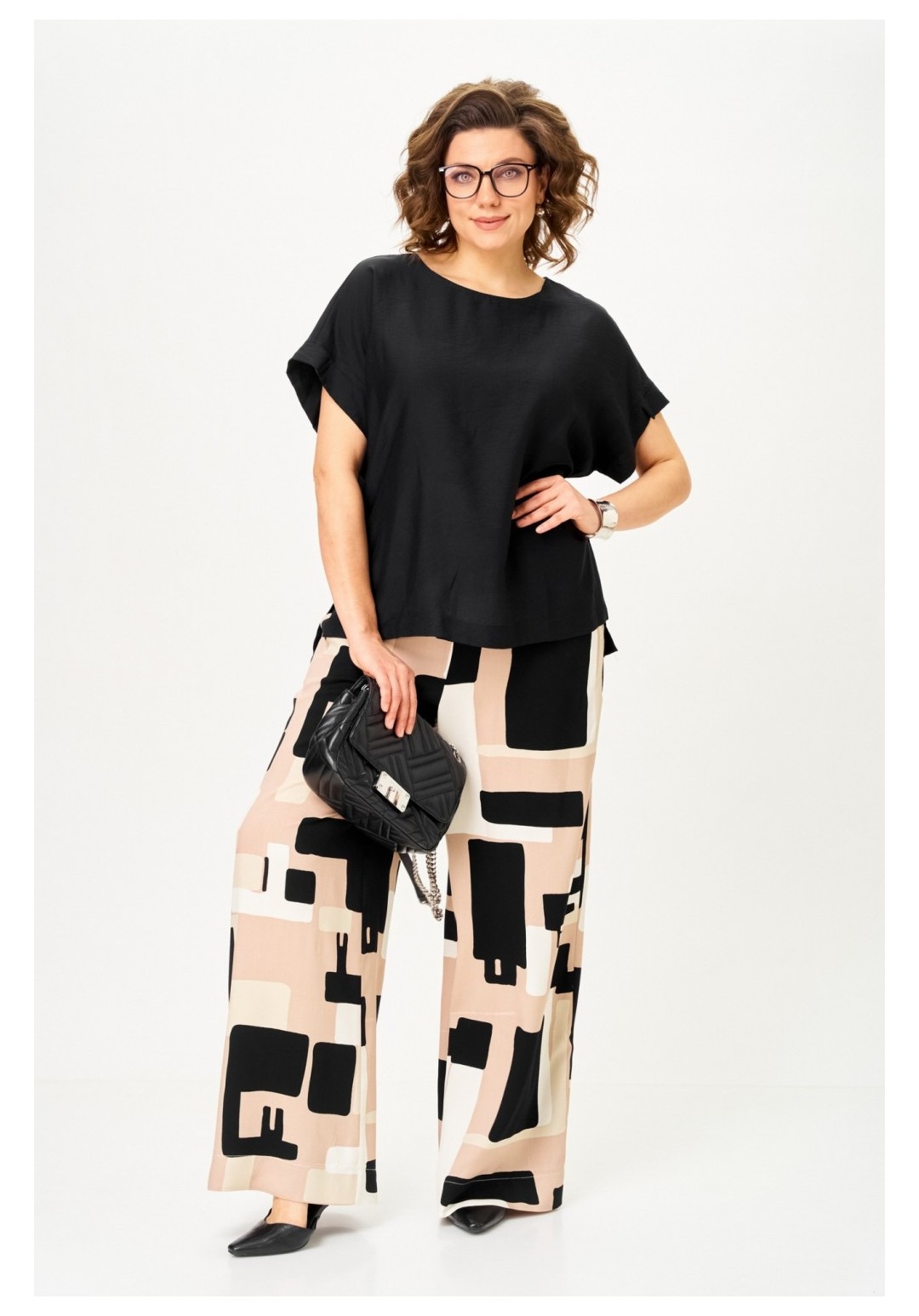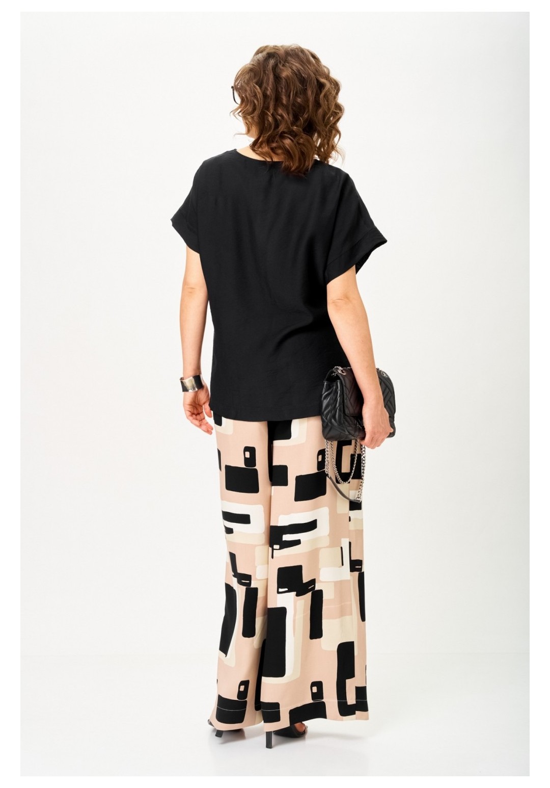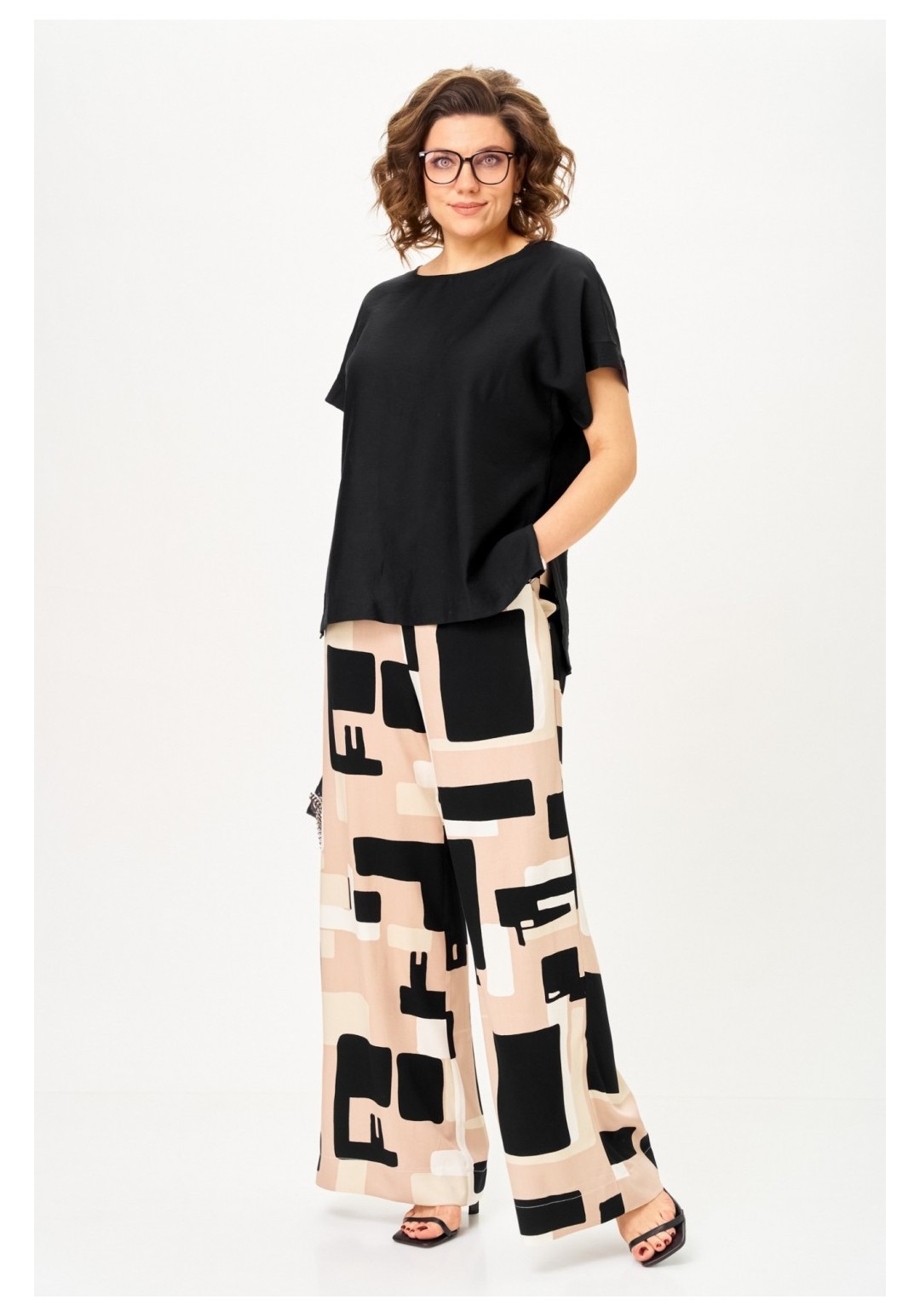 Костюм брючный 1384 песочно-черная графика Michel Chic — это идеальный выбор для создания современного и стильного образа. Коллекция бренда Michel Chic предлагает комплект, выполненный из струящейся вискозы, которая обеспечивает легкость и комфорт в течение всего дня. Брюки палаццо с актуальным принтом Ночная графика визуально удлиняют силуэт, а черный топ из тонкого текстиля придает глубину и выразительность образу. Боковые карманы и пояс на резинке добавляют практичности, а длина блузы 69 см и длина брюк 118 см обеспечивают идеальную посадку на фигуре. Этот комплект подойдет для летних прогулок, городских встреч и даже отпускного отдыха, делая вас яркой и уверенной в любой ситуации.