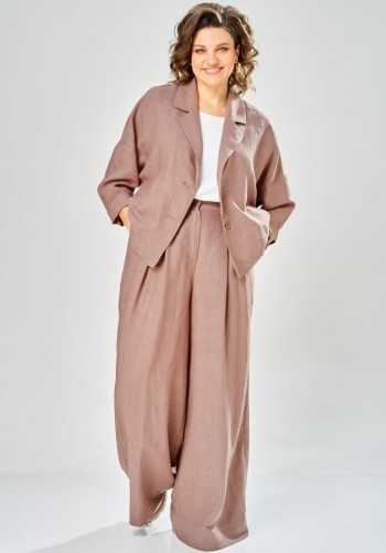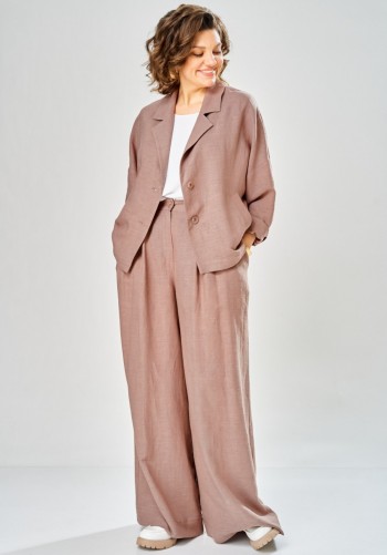Универсальный и удобный женский брючный костюм для повседневной носки. Комплект выполнен из приятных натуральных тканей. Брюки-бананы выполнены из хлопковой джинсовой ткани средней плотности, длина 7/8, по верху на притачном поясе с резинкой. По переду брюки с застроченными складками, застежка на молнию, имеются боковые карманы в швах и задние накладные. Джемпер свободного кроя, рукав спущен, по бокам разрезы, благодаря чему ее с легкостью можно носить как навыпуск, так и заправленной. Горловина и рукава обработаны контрастным довязом. По переду декорирован принтом с элементами из бахромы и ярким довязом. Такой комплект станет любимым в Вашем гардеробе, потому что это воплощение стиля и комфорта. Оба изделия прекрасно сочетаются между собой и могут смело создавать дополнительные стильные комбинации с другими вещами. Длина джемпера по спинке 63 см, длина рукава от плечевого шва 59 см. Длина брюк по боковому шву 94 см, по шаговому 64 см. Изделие подойдет на рост 170 см.
