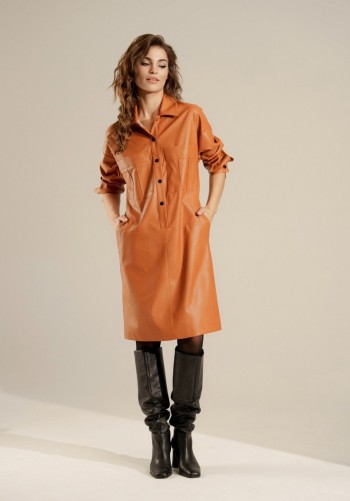 Костюм брючный, состоит из жакета и брюк. Жакет полуприлегающего силуэта, на подкладке, с центральной бортовой застежкой на 4 петли и пуговицы. Воротник отложной, на стойке. Рукав втачной, двухшовный со шлицей по низу и обработан 4-мя декоративными пуговицами. Карманы прорезные с клапаном. Спинка со средним швом. Брюки зауженные к колену, расклешенные к низу. Пояс притачной, застежка на молнию. Брюки с боковыми карманами.
