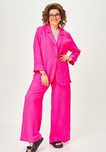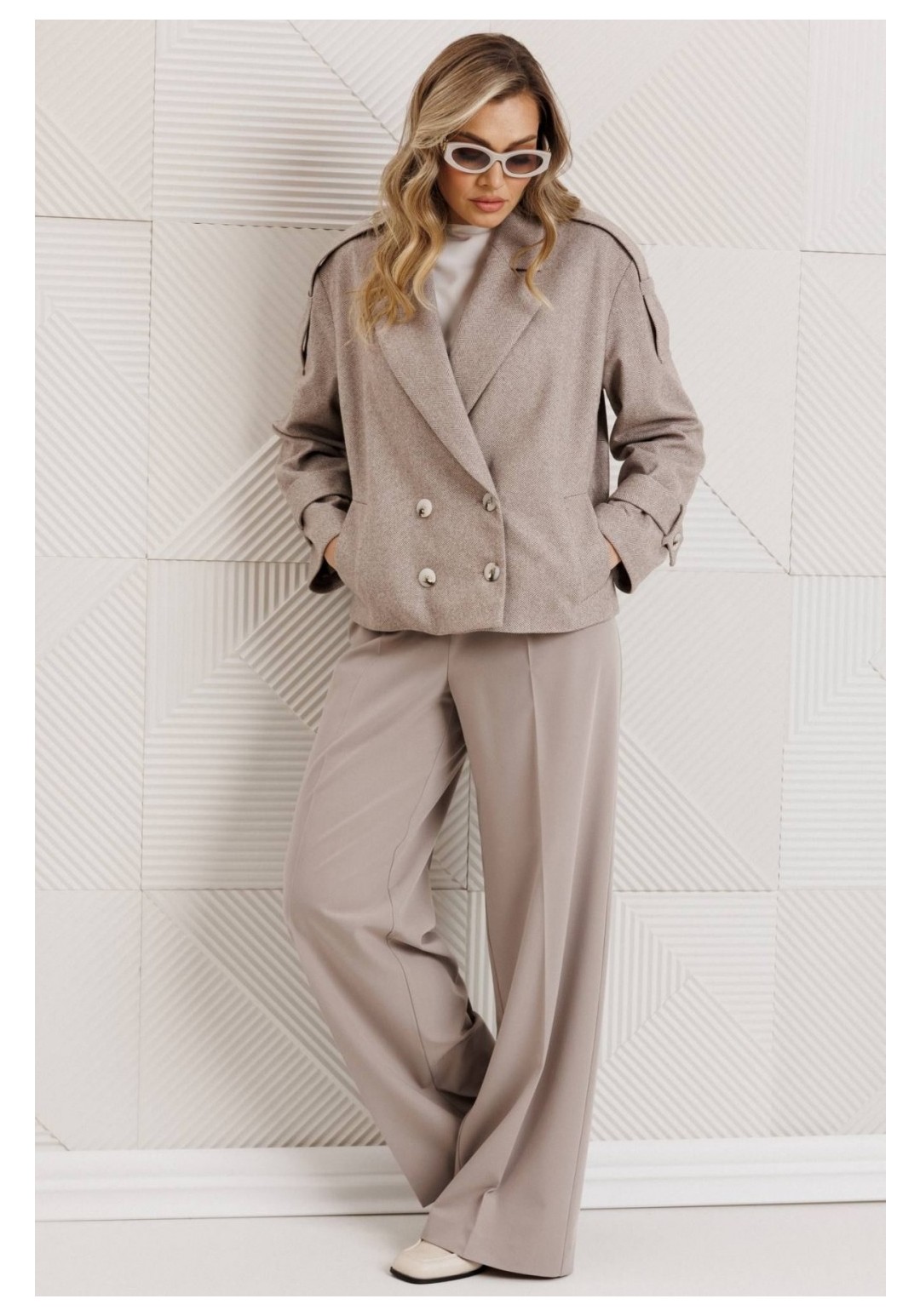 Универсальный комплект на межсезонье! Полупальто свободного силуэта с воротником пиджачного типа, с двубортной застёжкой на 2 пары пуговиц.По переду обработаны карманы и нагрудные вытачки. Спинка без среднего шва. Рукава одношовные с патами внизу,которые фиксируются шлёвками и пуговицами. На линии плеч:погоны-фиксируются шлёвками и пуговицами. Изделие на подкладке. Брюки с высокой посадкой,широкие, со складками от пояса по переду и стрелками. Застёжка на молнию и пуговицу. Пояс притачной со шлёвками, сзади частично резинка. Спереди имеются карманы с отрезным бочком. На задних половинках - вытачки. Вместе они создают безупречный образ, где каждая деталь работает на Ваш безупречный вид и удобство. длина спинки пальто: 63 см длина брюк: 112 см
