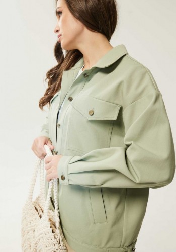 Комплект брючный 2-х предметный, состоящий из блузки и брюк. Блузка прямого силуэта, выполнена из вискозного полотна. Модель с цельнокроеным рукавом и асимметричным низом. Перед с застежкой по цельнокроеной планке на 7 петель и 7 пуговиц. Спинка состоит из двух частей, скрепленных по горловине на запах, а по линии талии зафиксированных завязкой, продетой в люверсы. Низ переда и спинки закруглен к боковым швам и переходит в разрезы; низ спинки удлинен относительно переда и оформлен углами в центральной части. Горловина оформлена отложным воротником на отрезной стойке. Рукав цельнокроеный, длиной ¾; в нижней части застрочено 5 вертикальных, односторонних складок. Длина блузки – 84 см (50-58 р-р); длина рукава (от горловины) – 52 см (50-52 р-р), 54 см (54-58 р-р). Брюки длинные, прямого силуэта, с посадкой на талии, выполнены из вискозного полотна. Модель без стрелок, без застежки, с наклонными боковыми карманами, на притачном поясе с эластичной лентой внутри. Спереди обработаны наклонные боковые карманы. На левой половинке брюк – имитация застежки на 7 петель и 7 пуговиц, в нижней части которой обработан разрез. Длина брюк по боковому (с поясом) – 106 см (50-52 р-р), 107 см (54-58 р-р).