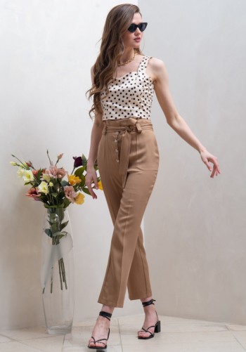 Этот костюм - идеальное сочетание стиля, комфорта и практичности. Он подойдет как для деловых встреч, так и для повседневного использования, дополняя ваш образ уверенностью и элегантностью. Если вам нравится изделия из натурального льна, но надоело ходить всегда в мятой одежде, то ткань лен вишер эта ваше находка. Хотя в составе ткани не присутствует лен, она прекрасно дышит и полностью повторяет текстуру натурального льна, а самое главное она практически не мнется. Комплект брючный 3-х предметный, состоящий из жакета, брюк и джемпера. Жакет и брюки выполнены из костюмно-плательной ткани лен-вишер, джемпер выполненный из трикотажного полотна Жакет прямого силуэта, с центральной бортовой застежкой с отрезными планками на 7 петель и 7 пуговиц, со стояче-отложным воротником с отрезной стойкой. Длина изделия по центру спинки 73 см от шва втачивания воротника в горловину. Перед с нагрудными вытачками, выходящими из пройм. По спинке и частично по переду настрочена кулиса, в которую втянут шнур. Для регулировки сборки по кулисе на шнур продеты фиксаторы, концы шнура оформлены наконечниками. Рукава втачные, одношовные, с притачными манжетами, застегивающимися на 1 петлю и 1 пуговицу, с разрезами в нижних швах рукавов, с настрочёнными патами, застегивающимися на 1 петлю и 1 пуговицу. Длина рукава с манжетой 62 см. Длина рукава может регулироваться с помощью паты. Жакет с плечевыми накладками. Брюки с посадкой на талии, зауженные к низу, на притачном поясе с резинкой вдоль всего пояса. На передних половинках брюк расположены наклонные боковые карманы. Джемпер прилегающего силуэта. Перед с нагрудными вытачками, выходящими из пройм. Из горловины перела вниз выходят 4 складки. Горловина переда и спинки округлой формы, по переду углубленная. Срезы горловин окантованы косой бейкой. Рукава втачные, одношовные. Длина рукава 26 см.