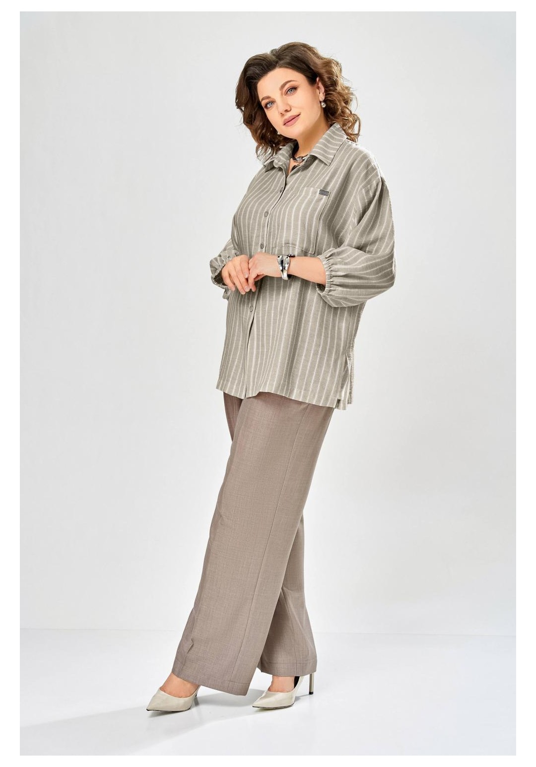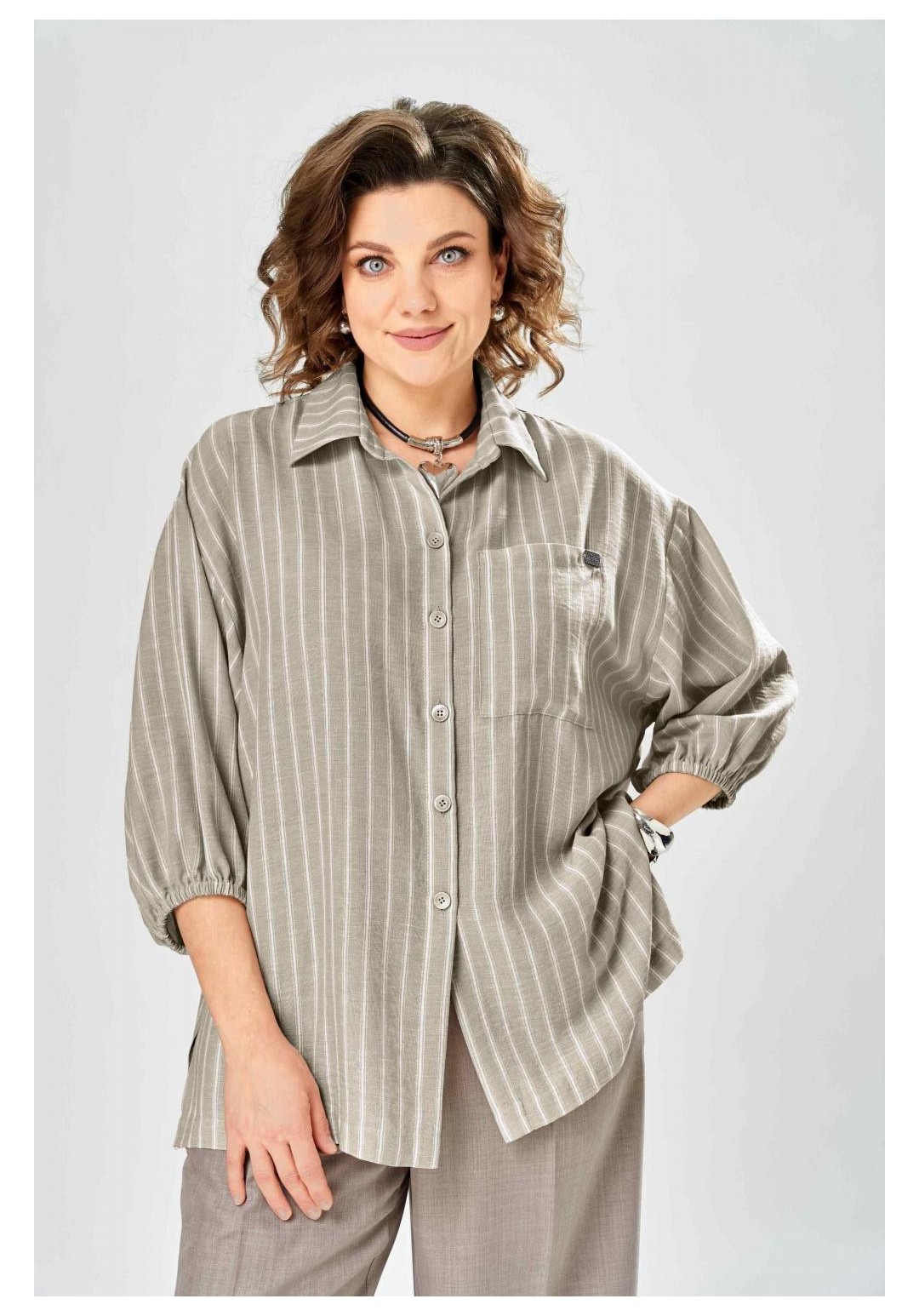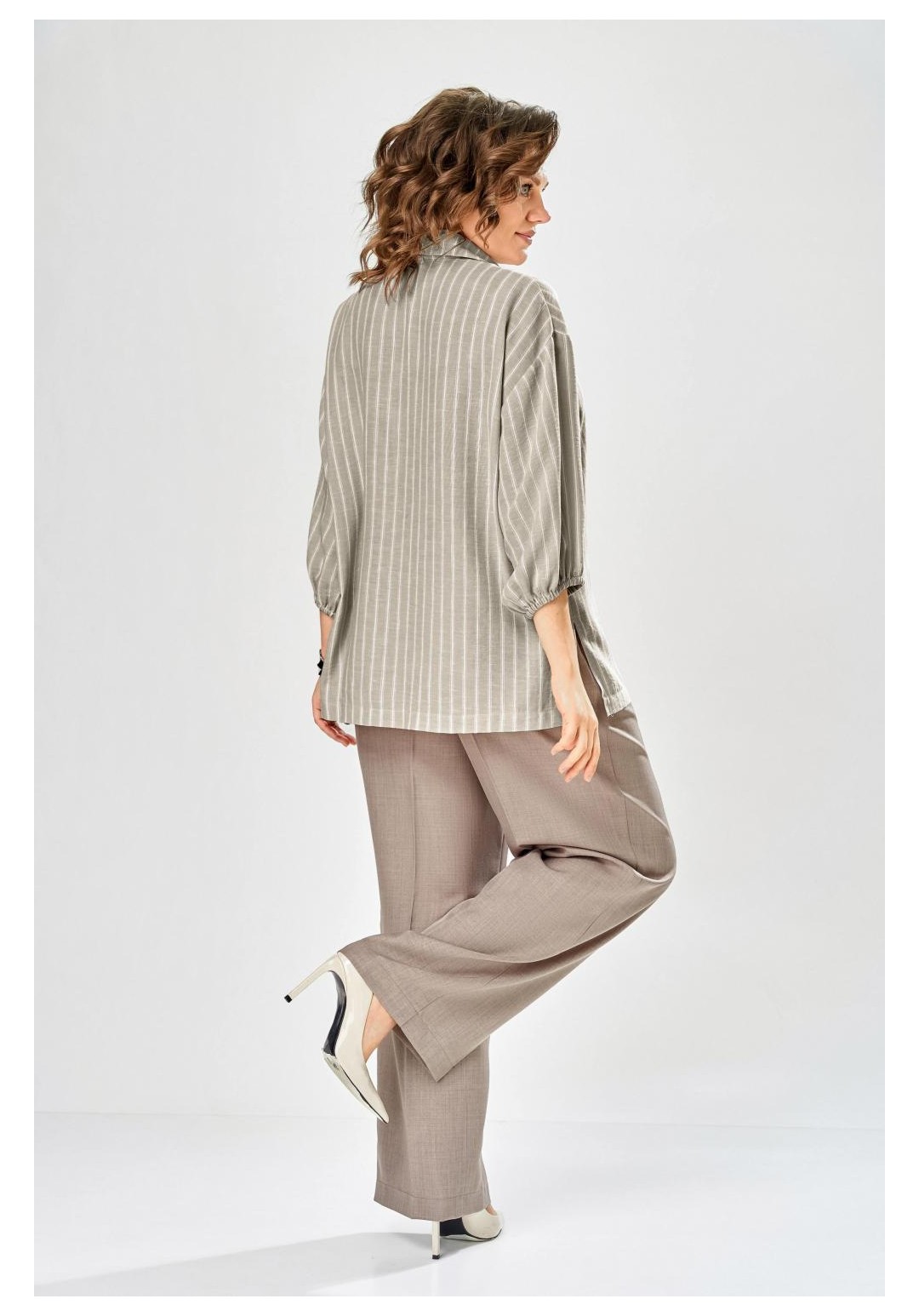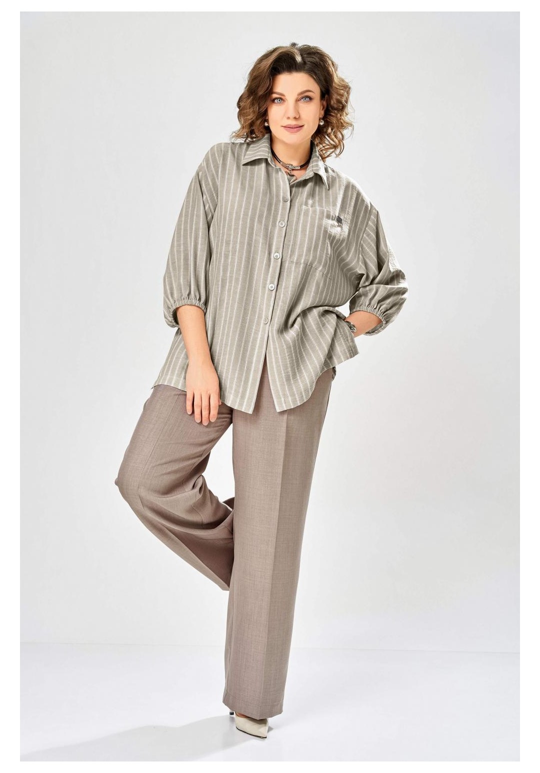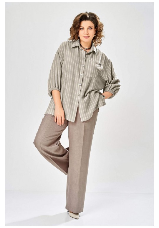 Состав: Блуза: лен 55%, вискоза 45%. Брюки: ПЭ 80%, вискоза 16%, спандекс 4%