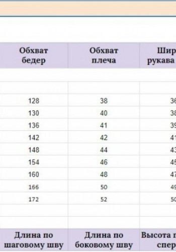 Таблица размеров