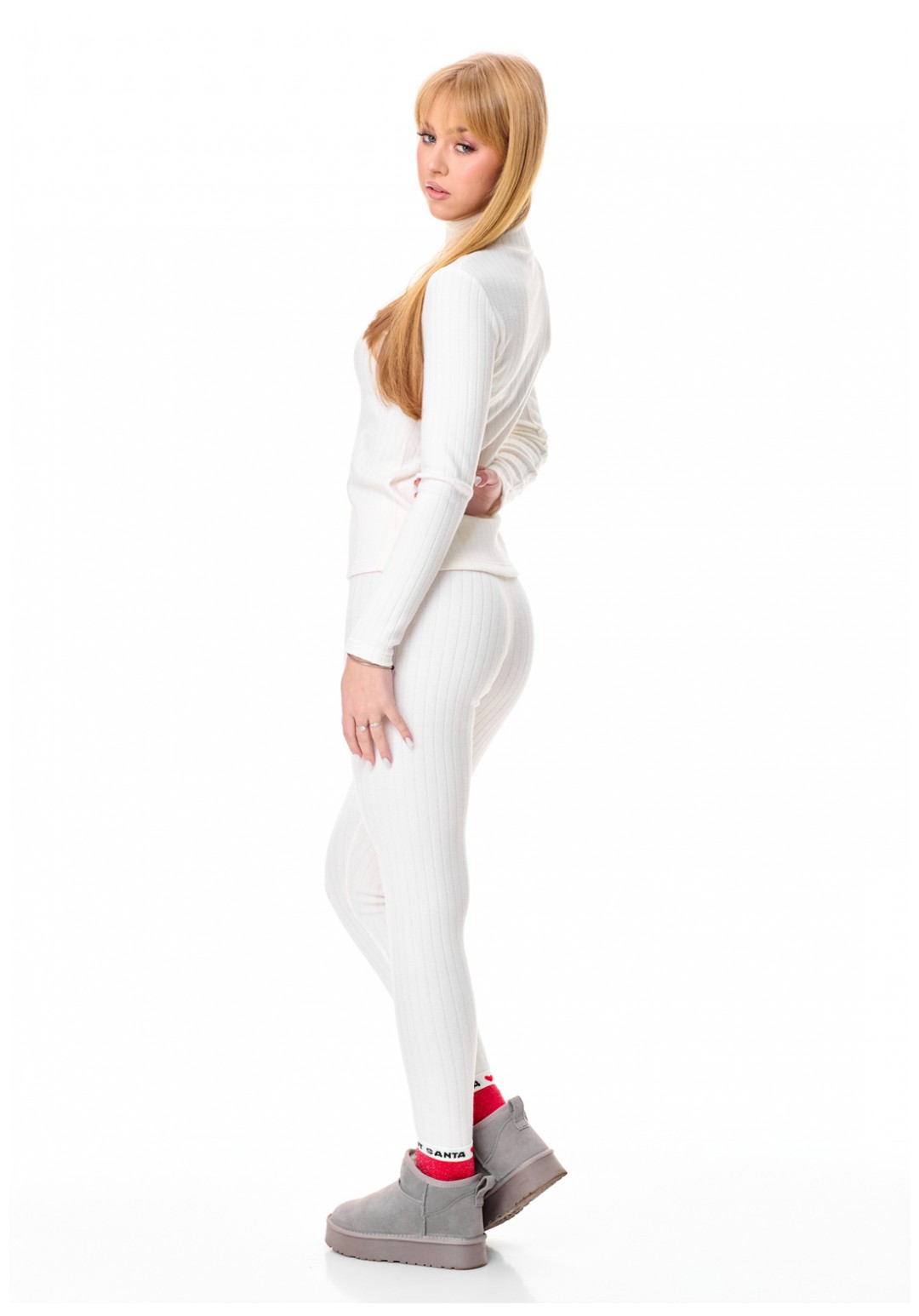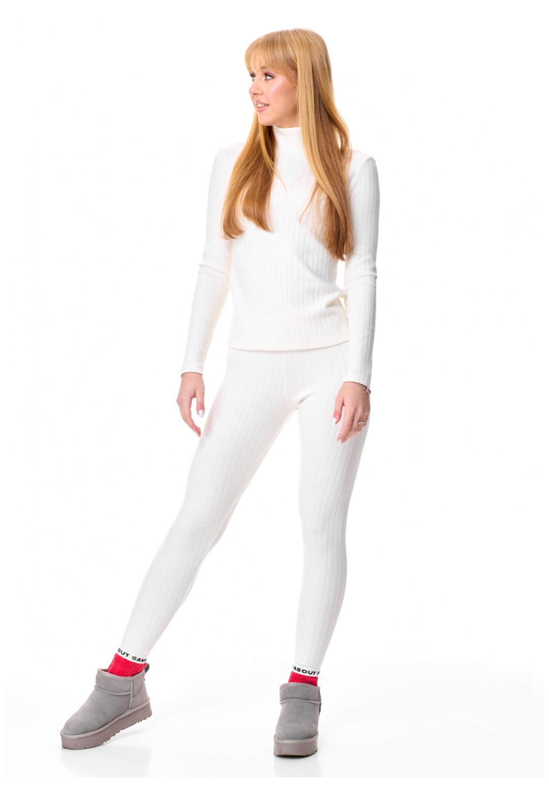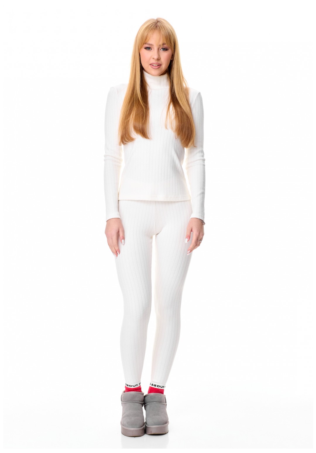 Современный удобный комплект из трикотажного полотна в "рубчик" состоит из гольфа-водолазки и леггинсов.