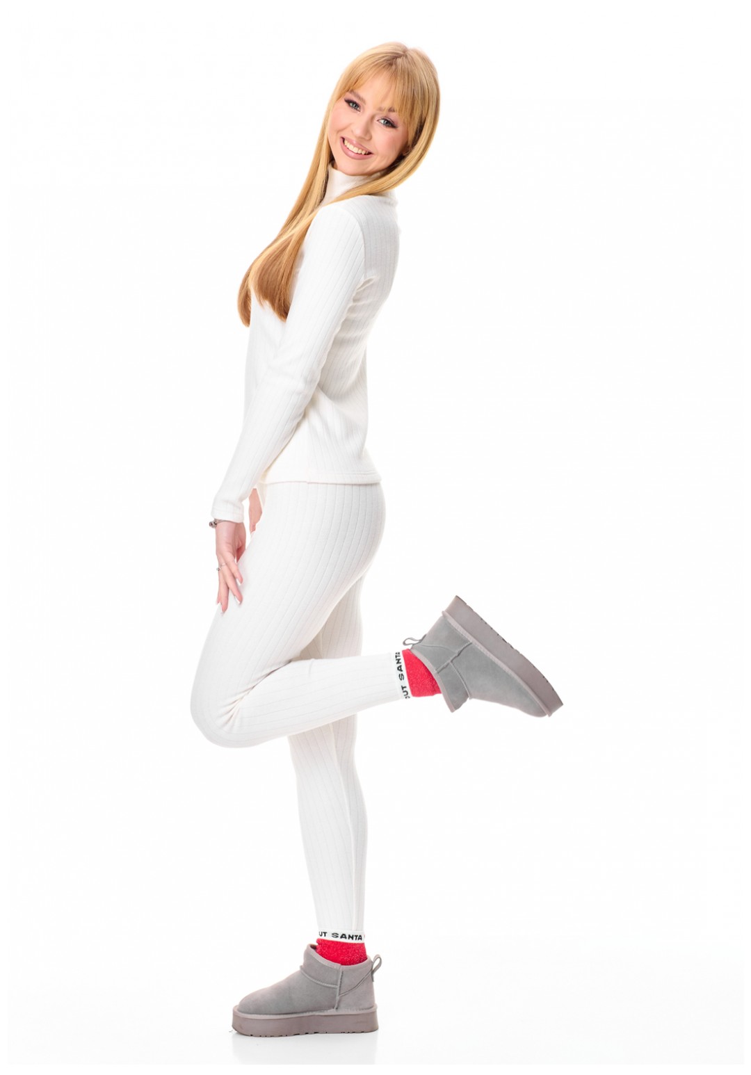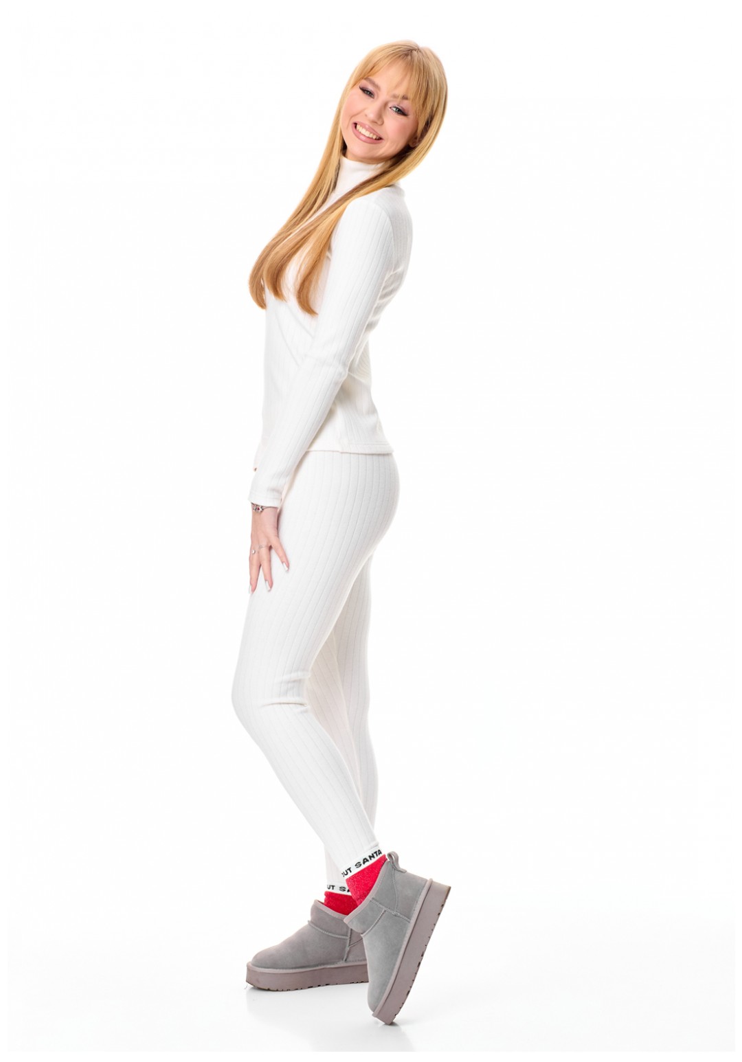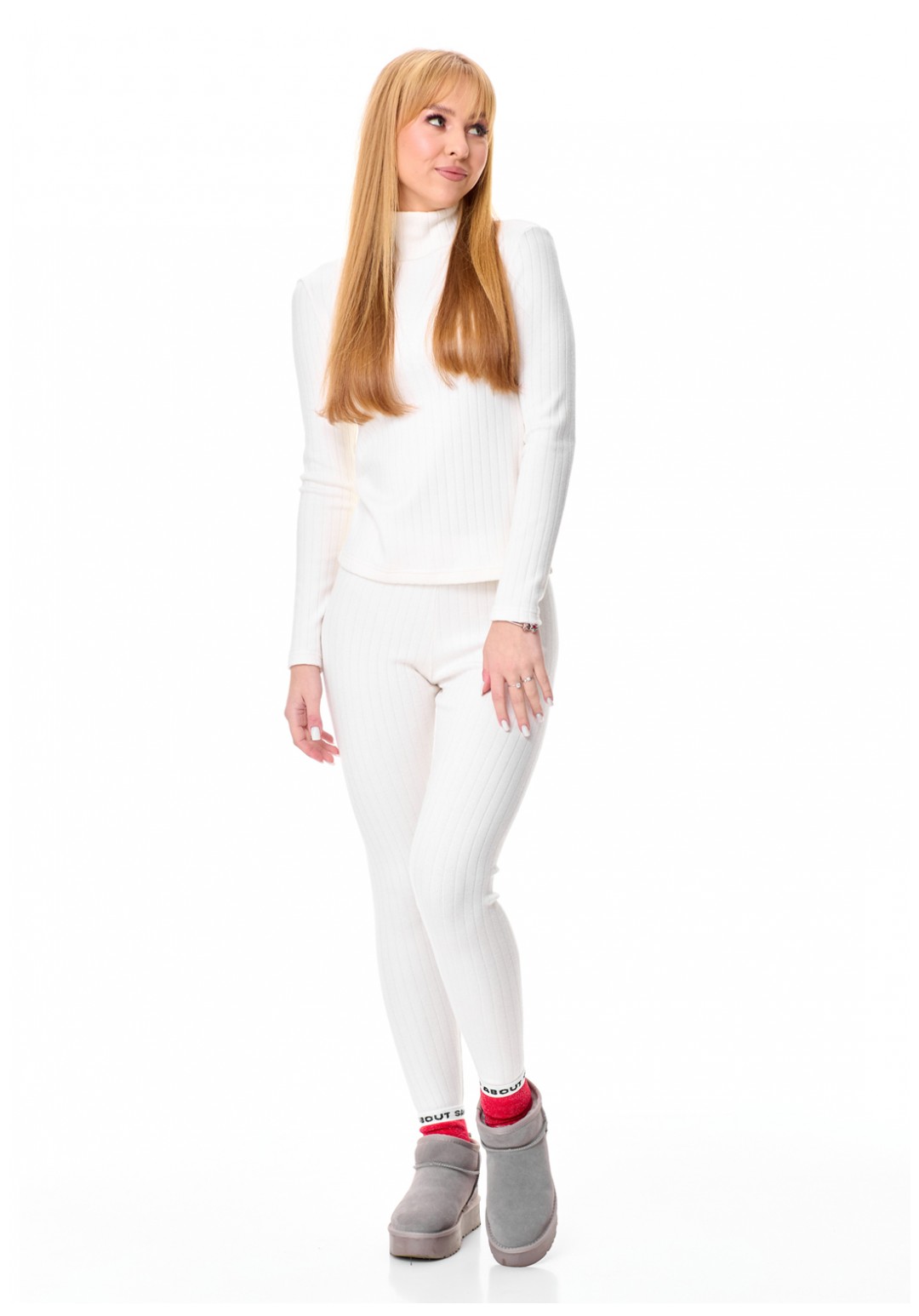 Современный удобный комплект из трикотажного полотна в "рубчик" состоит из гольфа-водолазки и леггинсов.