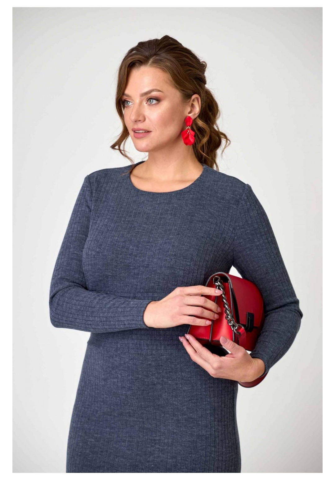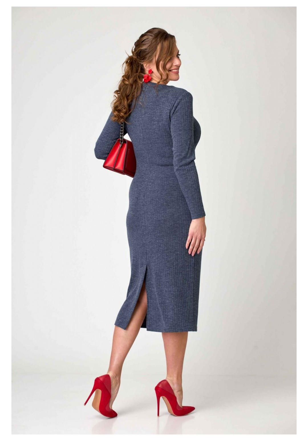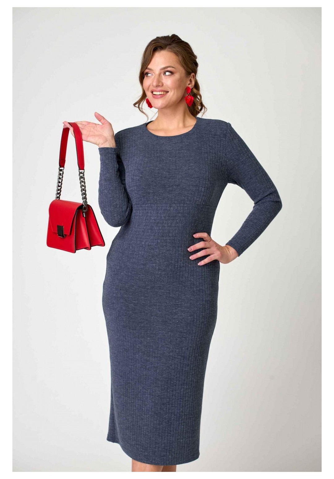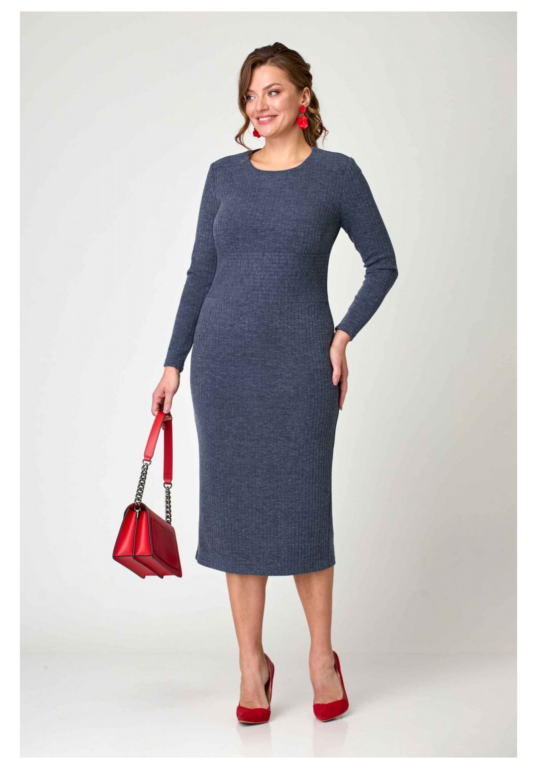 Платье женское полуприлегающего силуэта из трикотажа лапша. Горловина округлая. Рукав длинный, одношовный. Перед отрезной, с вставным широким поясом. Лиф с нагрудными вытачками. Юбка платья заужена к низу. Спинка с центральным швом, вверху которого застёжка на молнию, внизу шлица. Аксессуары в комплект не входят. Вырез горловины: округлый Длина изделия: 115 (±2) см. Рукав: длинный Длина рукава: 58 (±1) см. Статус модели: повседневный Силуэт: полуприлегающий Вид застёжки: молния вверху среднего шва сзади Цвет: синий Рисунок: без узоров и принтов Объем груди: размер 48 – 96 (±2) см. размер 50 – 100 (±2) см. размер 52 – 104 (±2) см Объем талии: размер 48 – 84 (±2) см. размер 50 – 88 (±2) см. размер 52 – 92 (±2) см. Ширина рукава под проймой размер 48 – 15 (±1) см. размер 50 – 16 (±1) см. размер 52 – 17 (±1) см. Ширина спинки 36 (±0,5) Вес: 0,490 кг