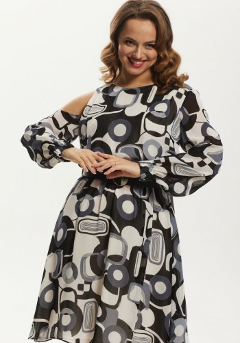 Мы представляем вашему вниманию легкое, нарядное, элегантное платье. Данная модель будет уместна для деловой встречи, а также для неформальных мероприятий разного рода. Платье женское, в нарядно-романтическом стиле; отрезное по линии талии; выполнено из лёгкой, струящейся плательной ткани. Передняя верхняя часть платья разрезная по среднему шву, в верхней части которого расположен небольшой треугольный разрез. Спинка разрезная по среднему шву, в который вставлена длинная, потайная молния. Конструкция верхней части платья выполнена в свободном стиле со спущенной линией плеча и глубокими складками на линии талии. Нижняя, передняя часть платья свободного кроя, состоит из 4-х клиньев с центральным разрезом спереди. Задняя, нижняя часть состоит из 2-х клиньев. Горловина округлой формы. Рукав цельнокроеный, объёмный, со спущенной линией плеча. В комплекте к платью прилагается широкий пояс на пряжке. Длина изделия по спинке: 124см. Длина рукава: 40-42 см.