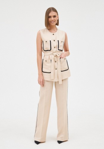 Платье выполненоиз ткани с вышивкой ришелье. Платье А-образного силуэта, длиной до линии колена. Спереди и по спинке кокетка со складками от нее. Вырез формы каре. Плечевой шов заужен. По низу платья широкая оборка. Рукав втачной, одношовный, длиной 3/4, со сборкой по окату и низу. Низ рукава обработан бейкой. Платье на отлетной по низу подкладке. В комплект входит съёмный пояс из основной ткани. Длина платья: р.42-46 - 102 см, р.48-52 - 103,5 см. Длина рукава: р.42-52 - 47 см.