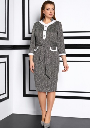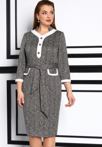 Платье выполнено из плательно-блузочной ткани с цветочным принтом. Платье Х-образного силуэта, длиной миди. Платье отрезное по линии талии. Спереди центральная застежка на пуговицы. Горловина переда V-образной формы. Плечевой шов заужен. Рукав втачной, одношовный, длиной выше линии локтя, расширенный к низу. Платье на отлетной по низу подкладке. Длина платья: р. 44-48 - 136 см, р. 50-54 - 137 см. Длина рукава: р. 44-48 - 25 см, р. 50-54 - 26 см.