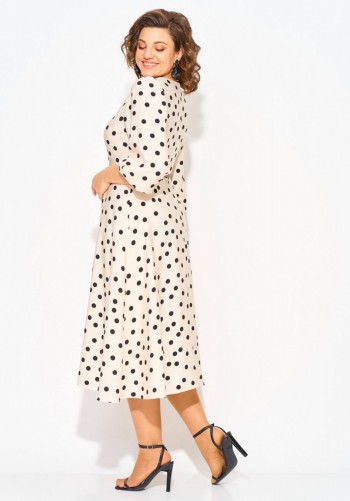 Платье выполнено из тонкой искуственной замши. Платье полуприлегающего силуэта, длиной миди. Платье отрезное по линии талии. Спереди и на спинке талиевые вытачки и средний шов. Застежка на потайную молнию в среднем шве спинки. Воротник-стойка. Рукав покроя реглан. Средний шов переда, талиевые вытачки, верхний шов рукава и линии реглана обработаны на лицо. В комплект входит съемный ремень из основной ткани с обтяжной пряжкой. Длина платья: р.44-48 - 130 см, р. 50-54 - 131,5 см. Длина рукава от горловины: р. 44-48 - 72 см, р. 50-54 - 73 см
