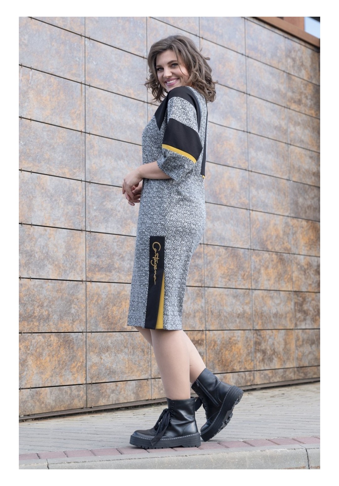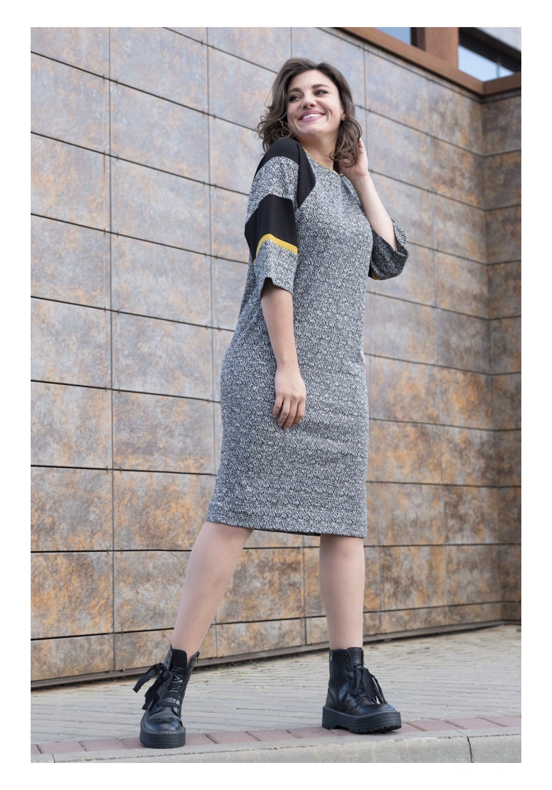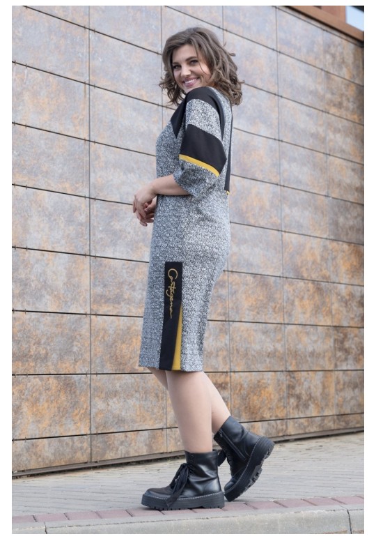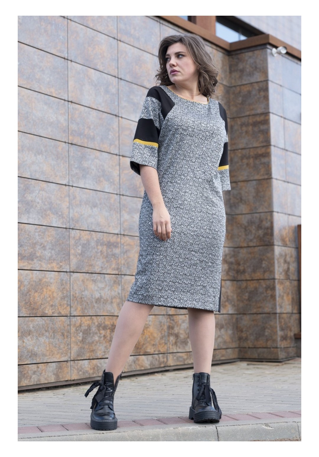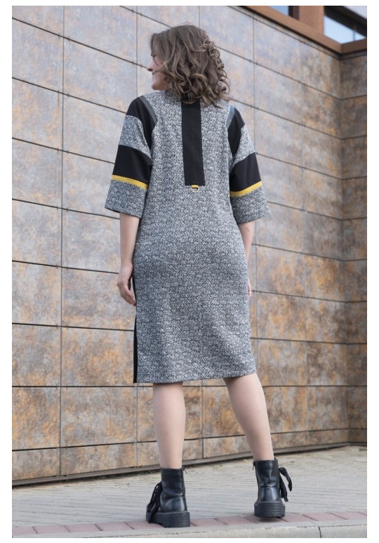 Трикотажное платье полуприлегающего силуэта. Трикотаж плотный, демисезон/еврозима. Рукав цельнокроенный, на переде шлица. Украшение в комплект не входит. Длина 108 см.