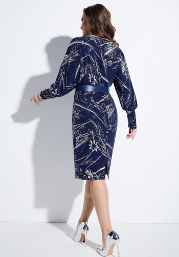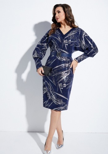Вечернее платье полуприлегающего силуэта из костюмно-плательной ткани средней плотности, немного тянется. В боковых швах удобные карманы. Длина 104 см, рукав 59 см.