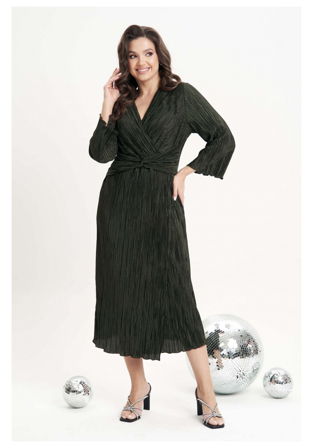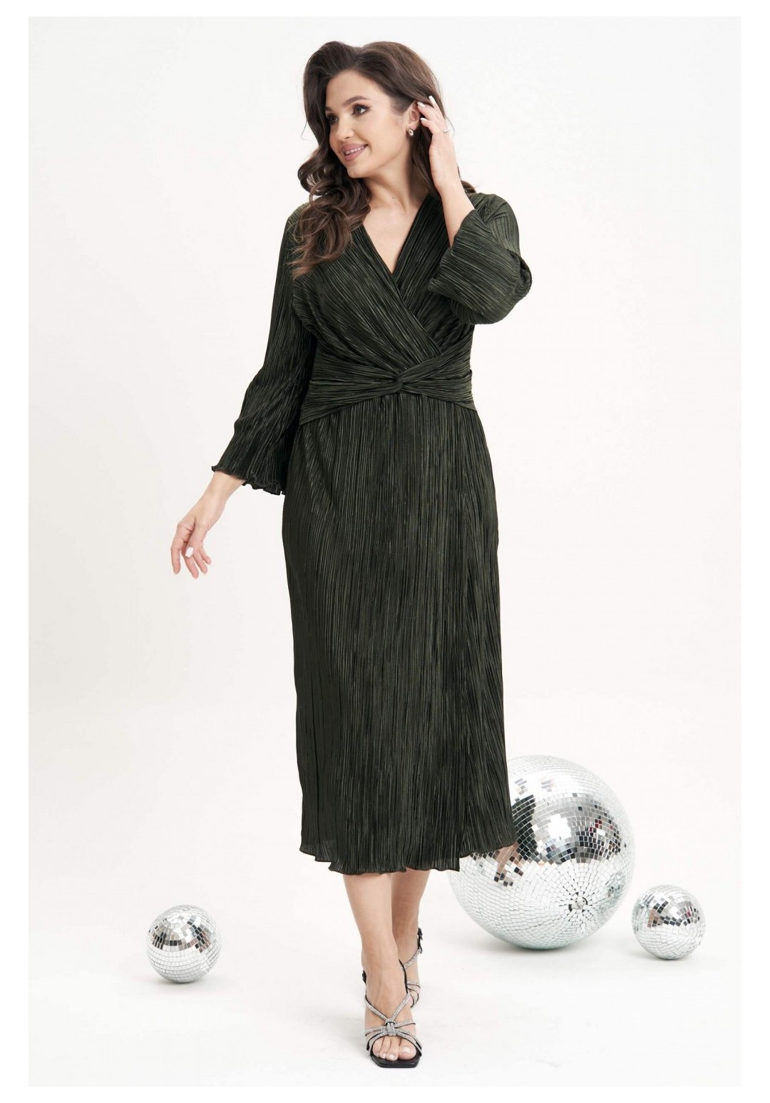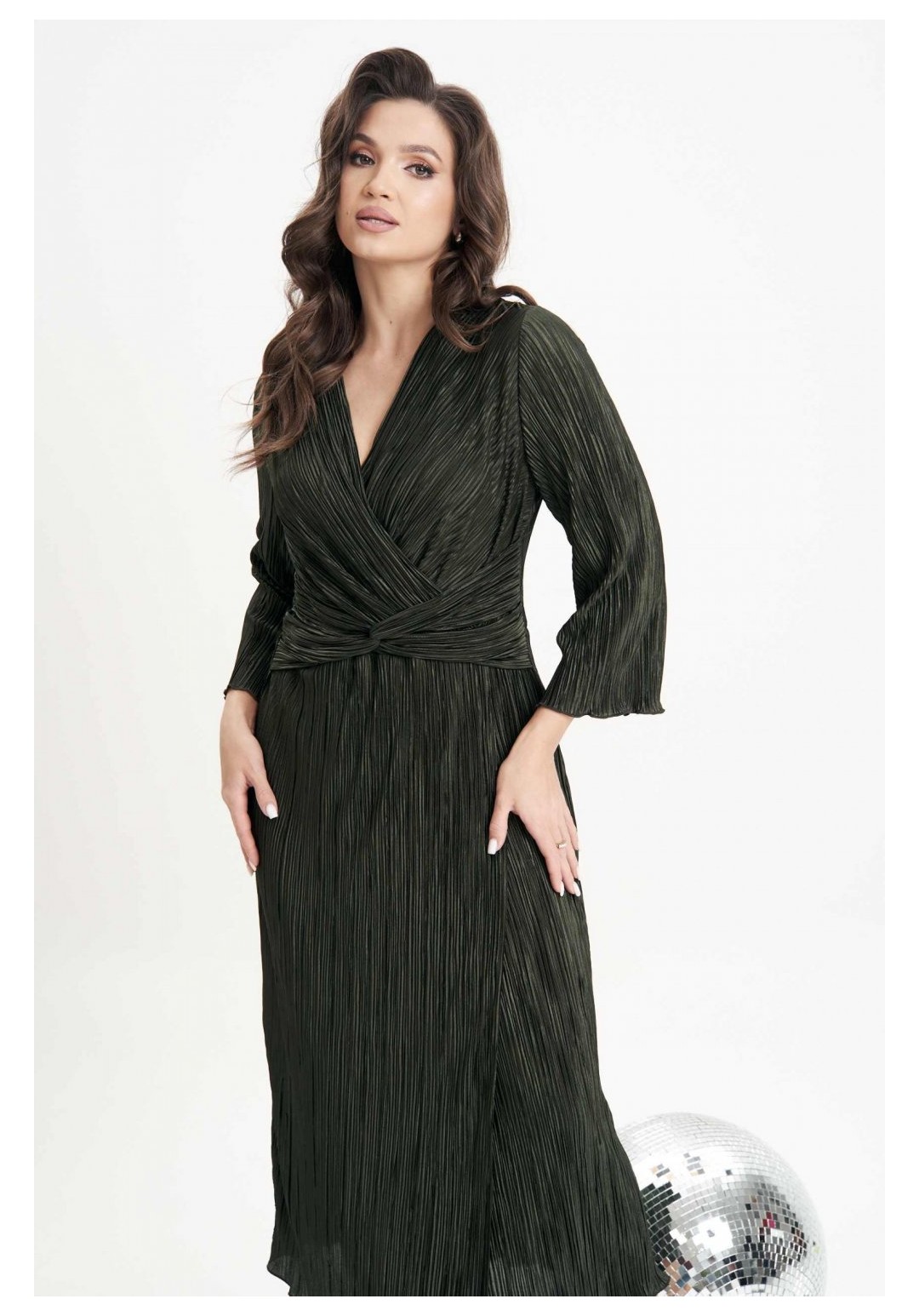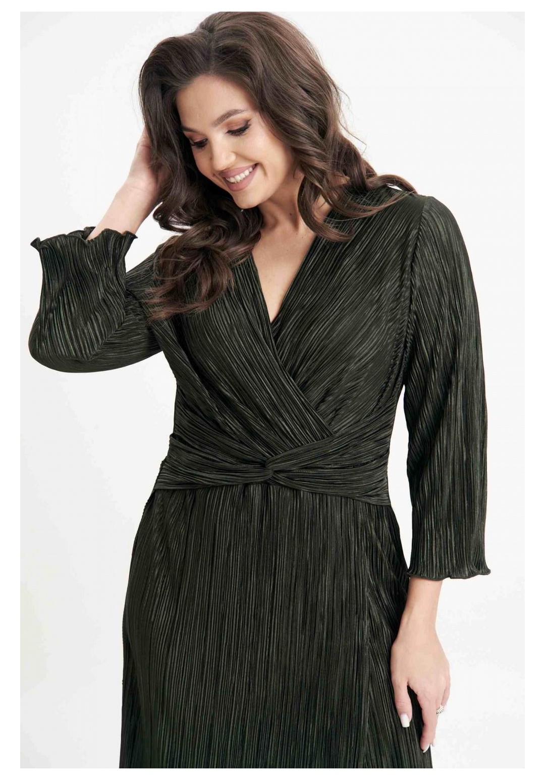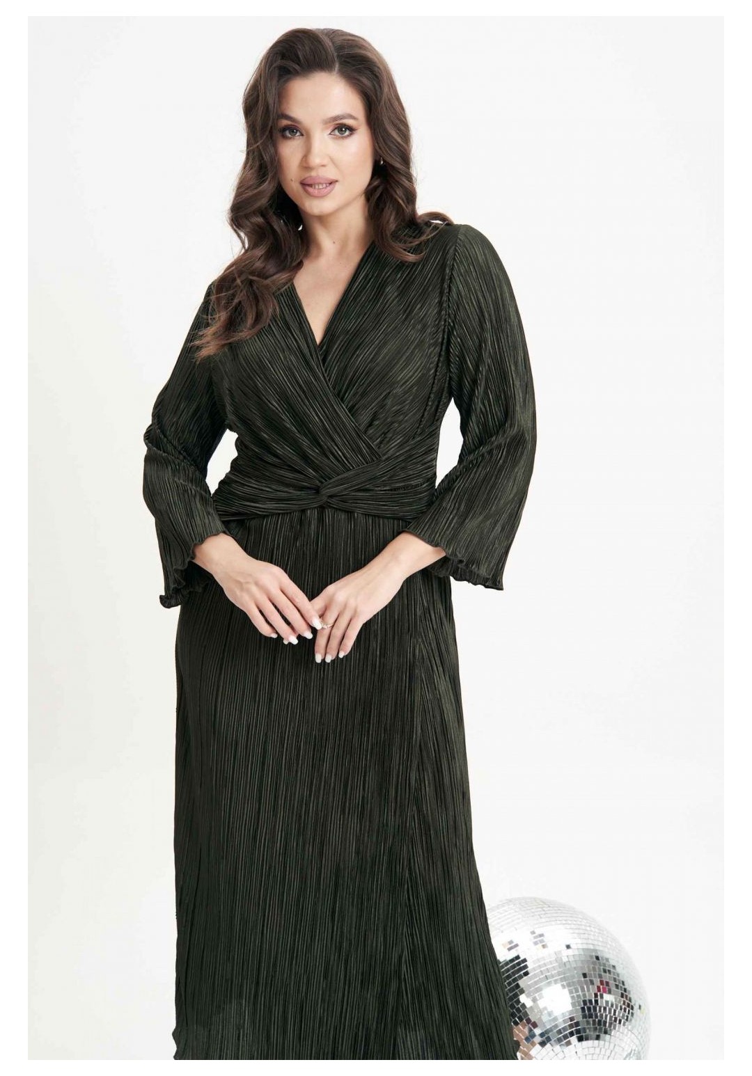Очарование и красота девушки любого возраста засияют еще ярче, если выбрать для нарядного образа изысканное вечернее платье. Темно-зеленый цвет - фаворит сезона 2024-2025 года. Женственный силуэт, подчеркивающий линию талии, и невероятная фактура гофрированного полотна делают эту модель не только изысканно-красивой, но и мега удобной. Полуприлегающий силуэт, втачной покрой, рукав длиной 7/8, отрезной лиф с запахом, юбка с запахом по переднему полотнищу. По линии талии по переду акцентная драпирующаяся деталь-перевертыш. По линии талии на спинке-эластичная тесьма. Длина платья около 120 см. Длина рукава около 52 см.