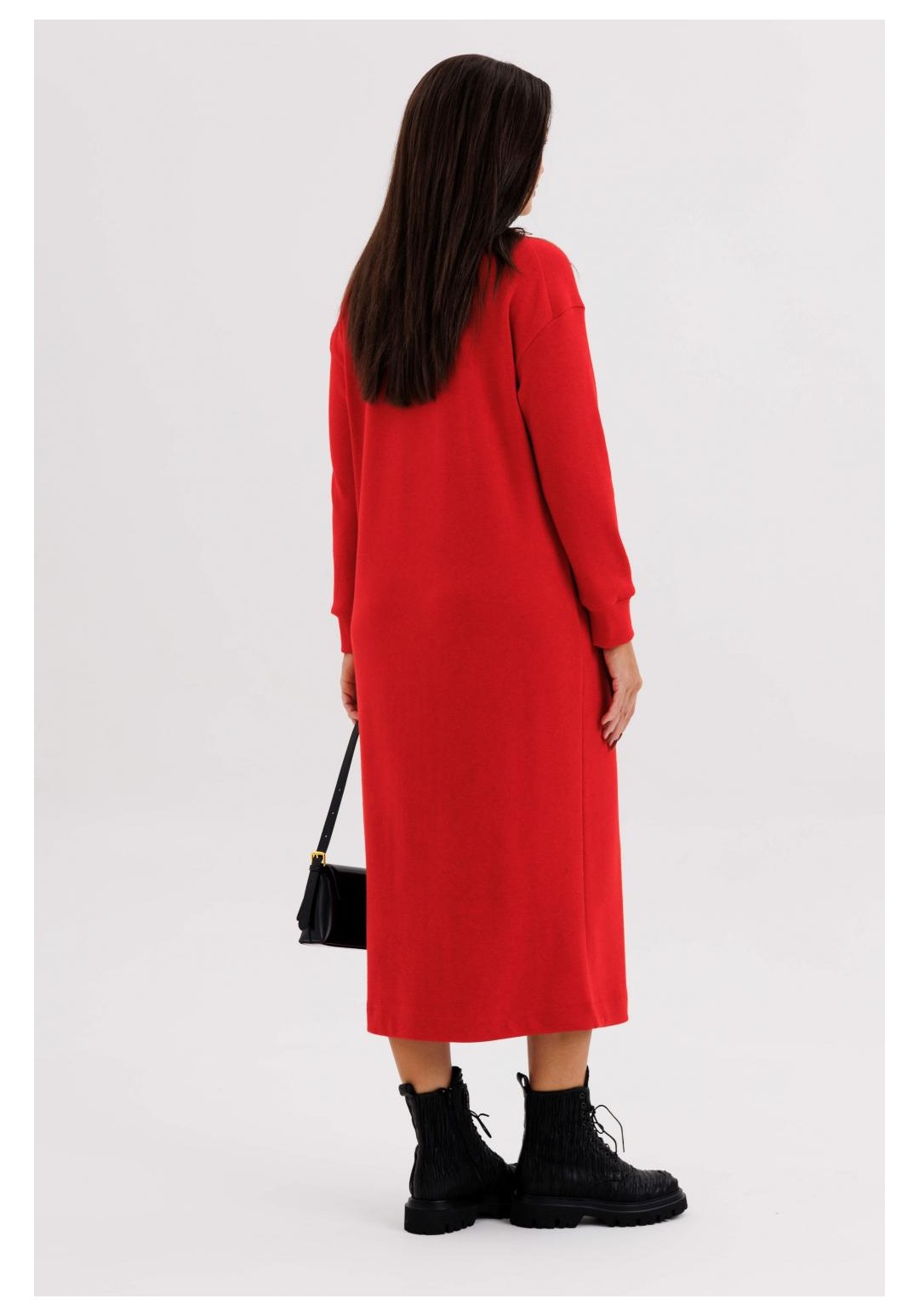 Красное платье миди из трикотажного полотна без разреза — стильный выбор для уверенных в себе женщин, ценящих комфорт и элегантность. Модель выполнена из мягкого эластичного трикотажа, который идеально садится по фигуре и подчёркивает силуэт, не ограничивая движения. Платье имеет прямой крой, длину миди (до середины икры) и закрытый подол без разреза, что делает образ сдержанным и утончённым. Благодаря лаконичному дизайну, платье легко впишется как в повседневный, так и в деловой гардероб. Мягкая фактура ткани приятна к телу и подходит для любого сезона. Насыщенный красный цвет подчёркивает женственность и уверенность, а минималистичный стиль позволяет комбинировать платье с различными аксессуарами и обувью — от классических туфель до ботильонов. Ключевые преимущества: Модный прямой силуэт без разреза Удобная длина миди Эластичное трикотажное полотно высокого качества Универсальный дизайн — на работу, прогулку, свидание или вечерний выход.