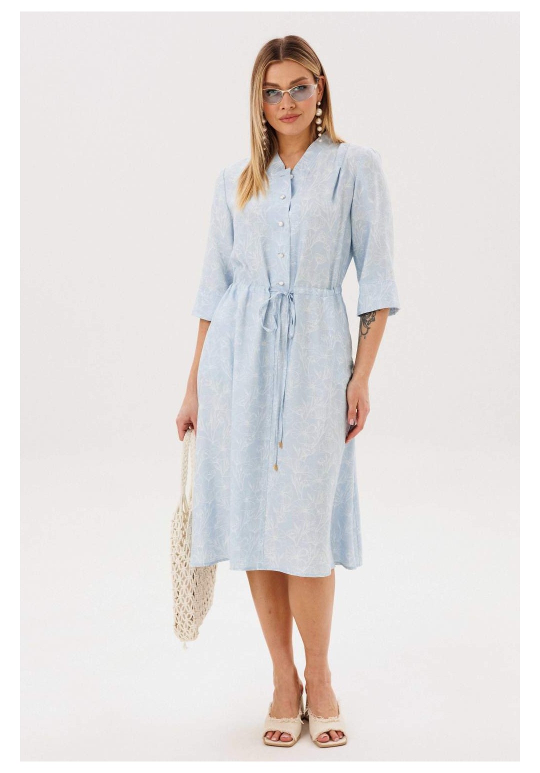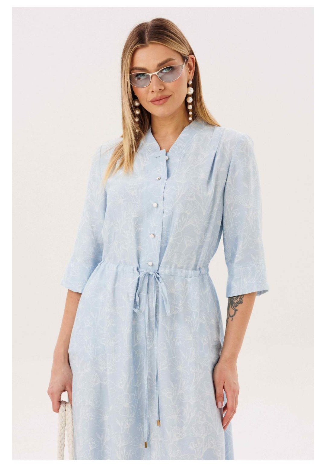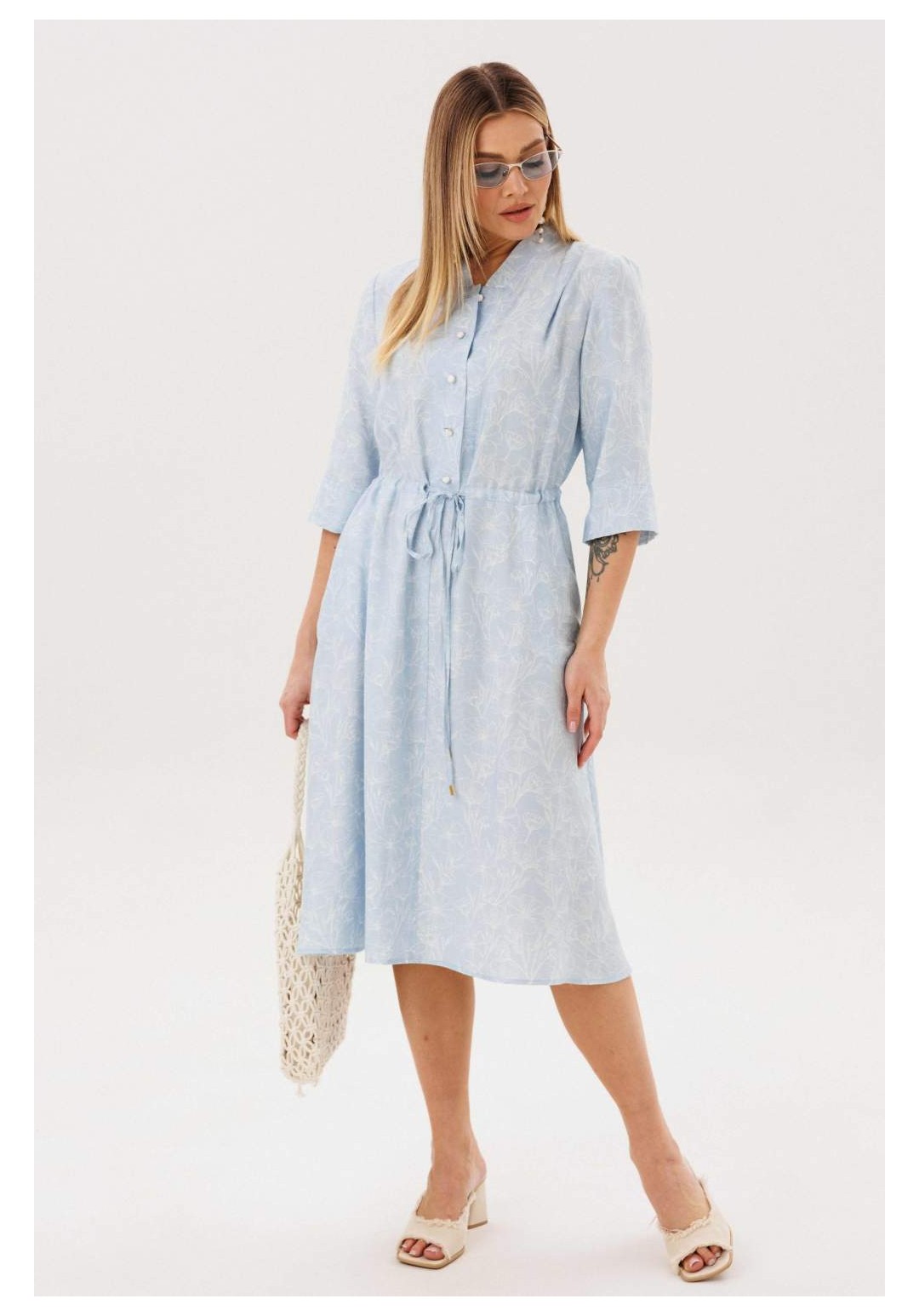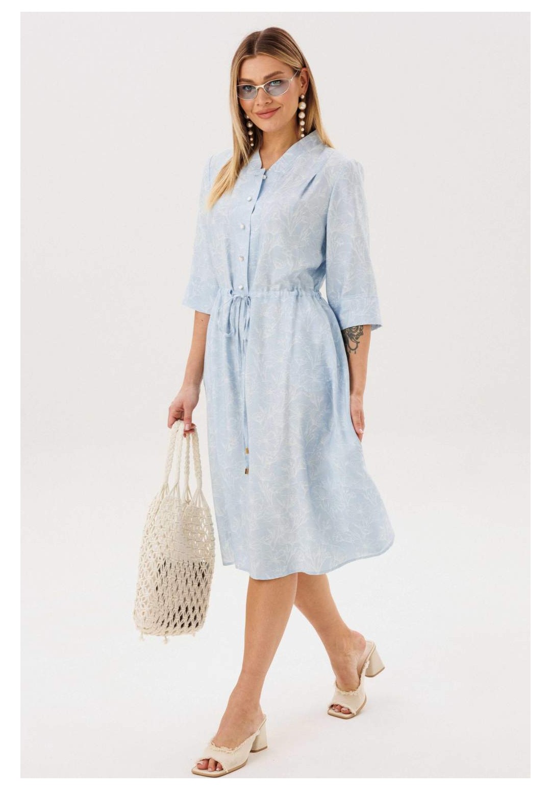 Удобство и комфорт-не самый последний аргумент при выборе модного летнего платья. Этот сезон снова возводит на пьедестал натуральные дышащие ткани, первой из которых, само собой, идет вискоза. Это экологичное полотно позволяет создавать изделия не только удивительной красоты, но и потрясающего комфорта. Эффектный верх и легкий клеш нижней части... Изысканность и элегантность такого платья дарит своей обладательнице эффектный образ. Полуприлегающий силуэт, втачной покрой, отрезной лиф и коническая юбка. Полочка лифа с центральной застежкой на петли и пуговицы, втачным воротником, имитирующем стойку с фигурной линией втачивания, и мягкой складкой-вытачкой. Юбка коническая, с карманом в боковом шве. По линии талиикулиска, с частично-эластичной тесьмойи шнуром из основной ткани. Верхняя часть спишки с центральным швом и декоративной нашивкой. Рукав втачной, с отрезной мягкой манжетой по низу. Длина изделия около 112 см. Длина рукава около 40 см.