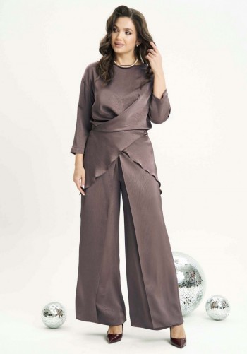Модное веяние нынешнего времени: нарядное платье - комбинация из струящейся ткани с атласным блеском. Платье – миди на тоненьких брителях, которые регулируются по длине. Мягкий женственный силуэт формируется кроем по-косой. Чехол из тонкого трикотажа. Длина платья 120 см.