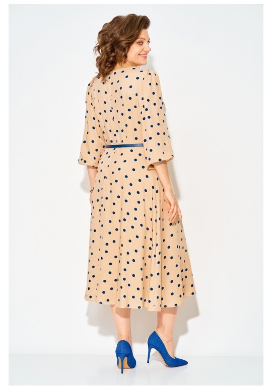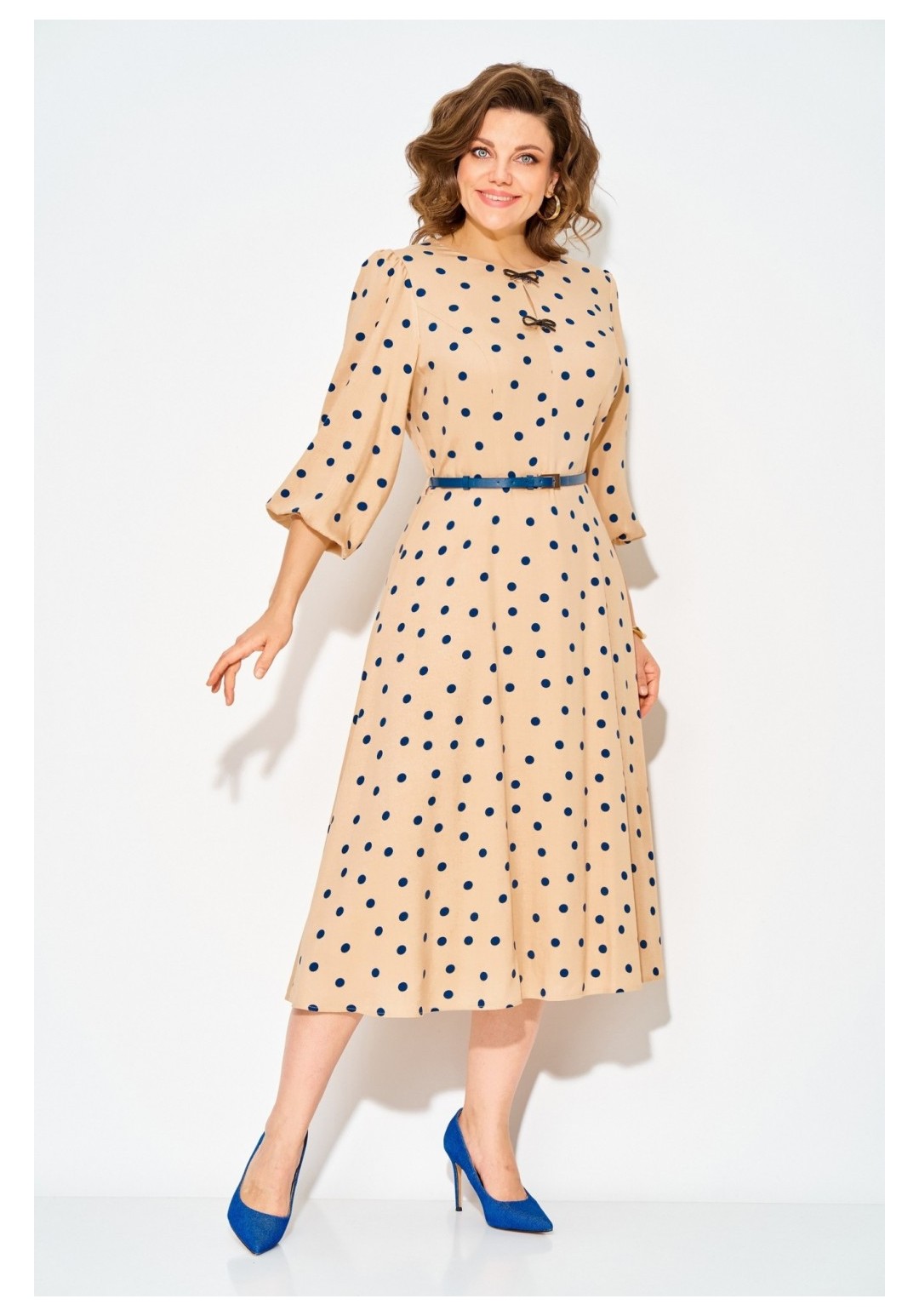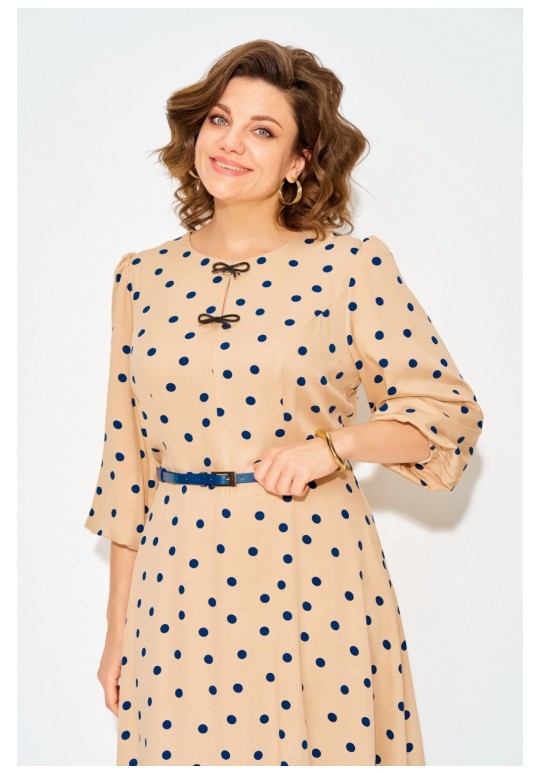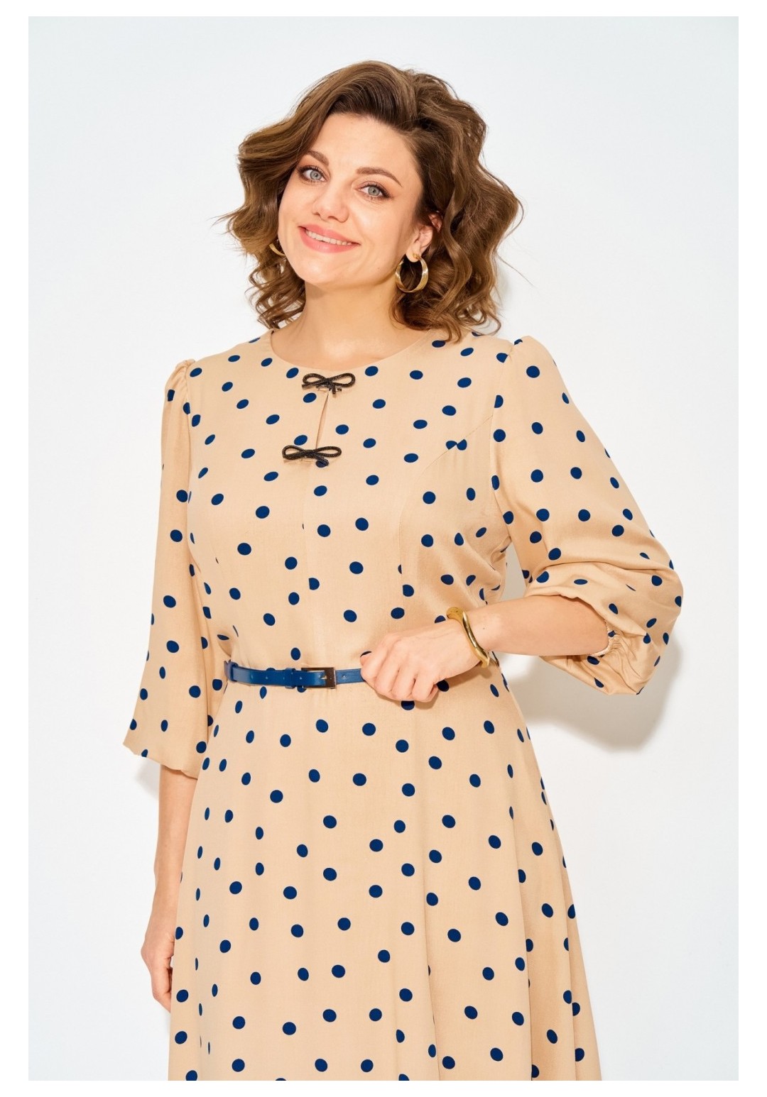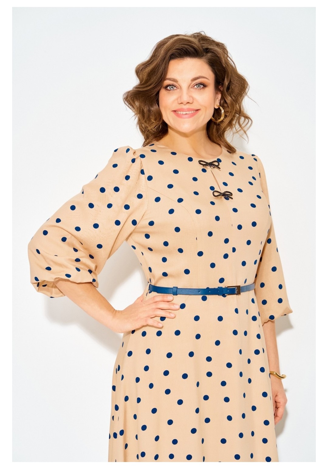 Платье 1511 бежевый Liliana-style — это настоящее воплощение стиля и комфорта. Коллекция бренда Liliana-style создала модель из вискозно-хлопкового материала, что гарантирует лёгкость и приятные ощущения на теле. Платье в горошек имеет округлый вырез и расклешенную юбку фасона полу-солнце, что придаёт ему женственность. Особенностью дизайна являются рукава-фонарики длиной ¾ и потайная молния по спинке. Капелька по лифу украшена съёмными брошами в виде банта, добавляющими изюминку образу. Это платье идеально подходит для весны и лета, будь то на каждый день или для особого мероприятия. Цвет — бежевый с акцентом на горошек, длина по спинке составляет 118-120 см.