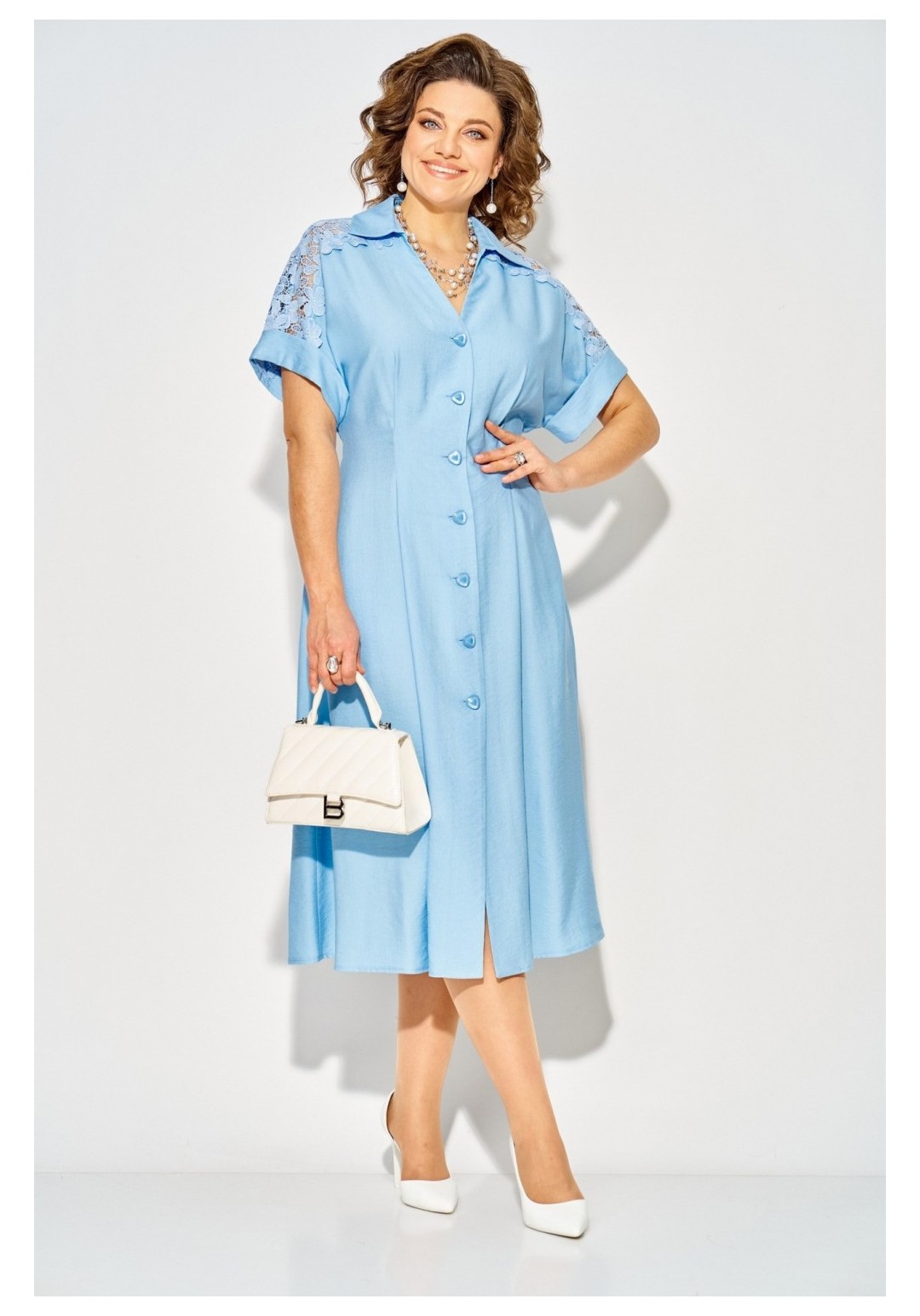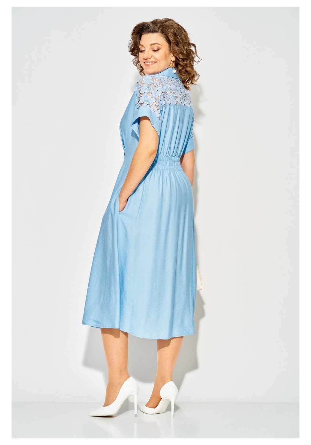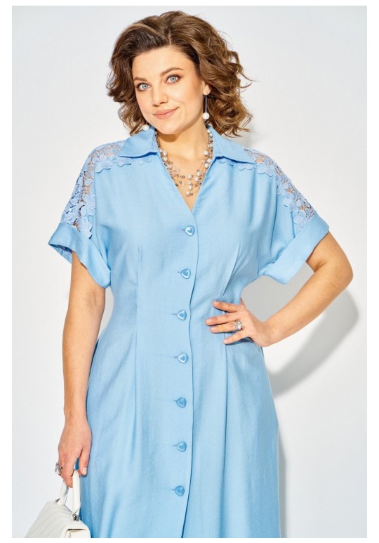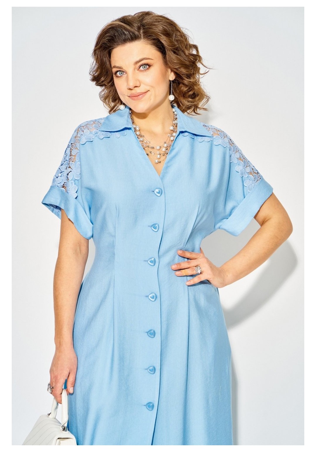 Платье 1519 Liliana-style очаровывает своим весенне-летним исполнением из вискозного полотна с хлопковым кружевом. Коллекция бренда Liliana-style предлагает это полуприталенное платье с V-образным вырезом и отложным воротником. Центральная застежка на пуговицы дополняет его утонченность. Декоративные складки и резинка на спинке создают комфортное прилегание. Голубой цвет и длина по спинке около 126 см делают это платье идеальным для отдыха и романтических встреч в теплое время года. Спущенный рукав и вставки из кружева подчеркивают изысканность модели, дополняя её универсальность для множества случаев.