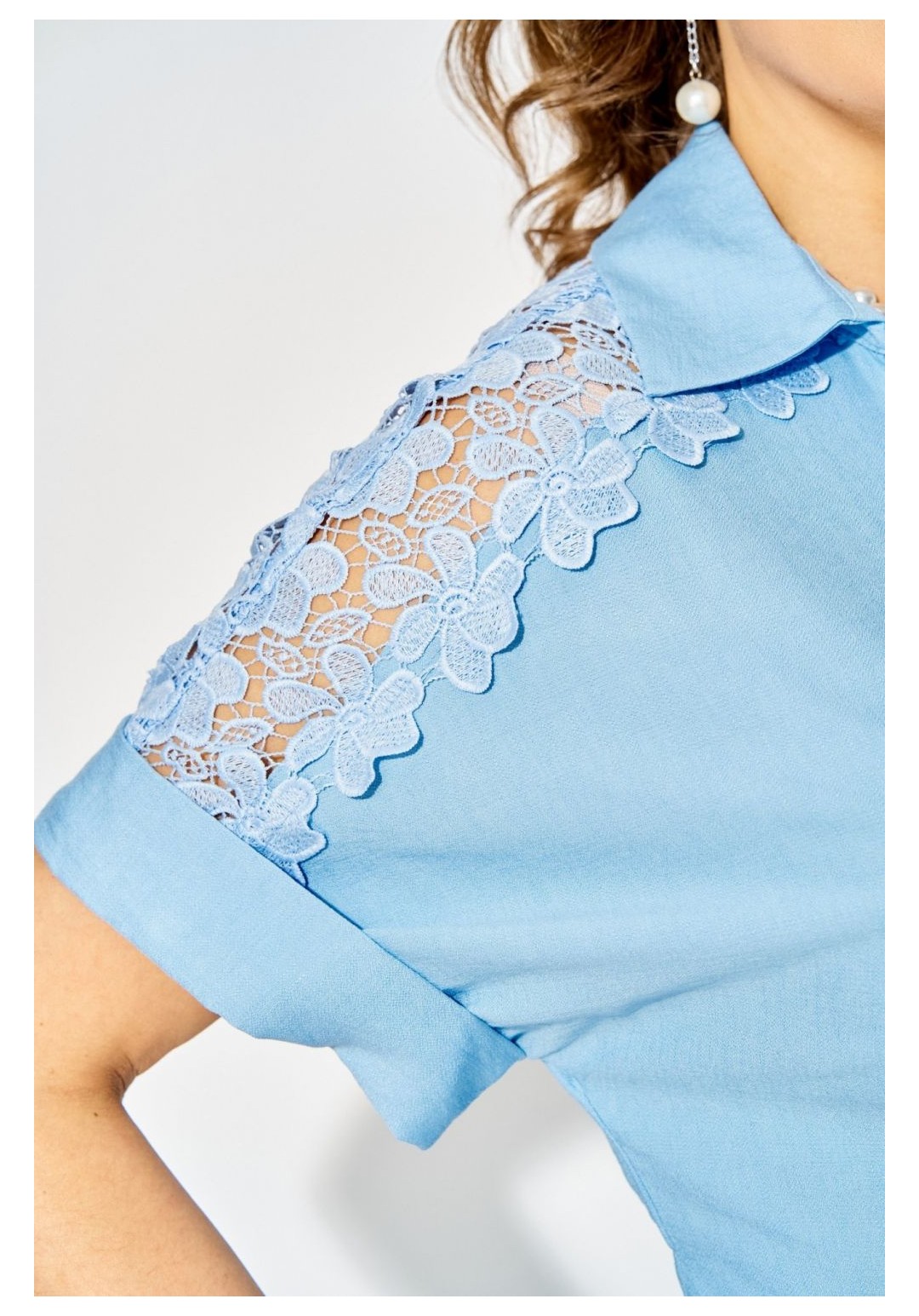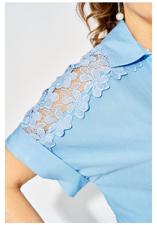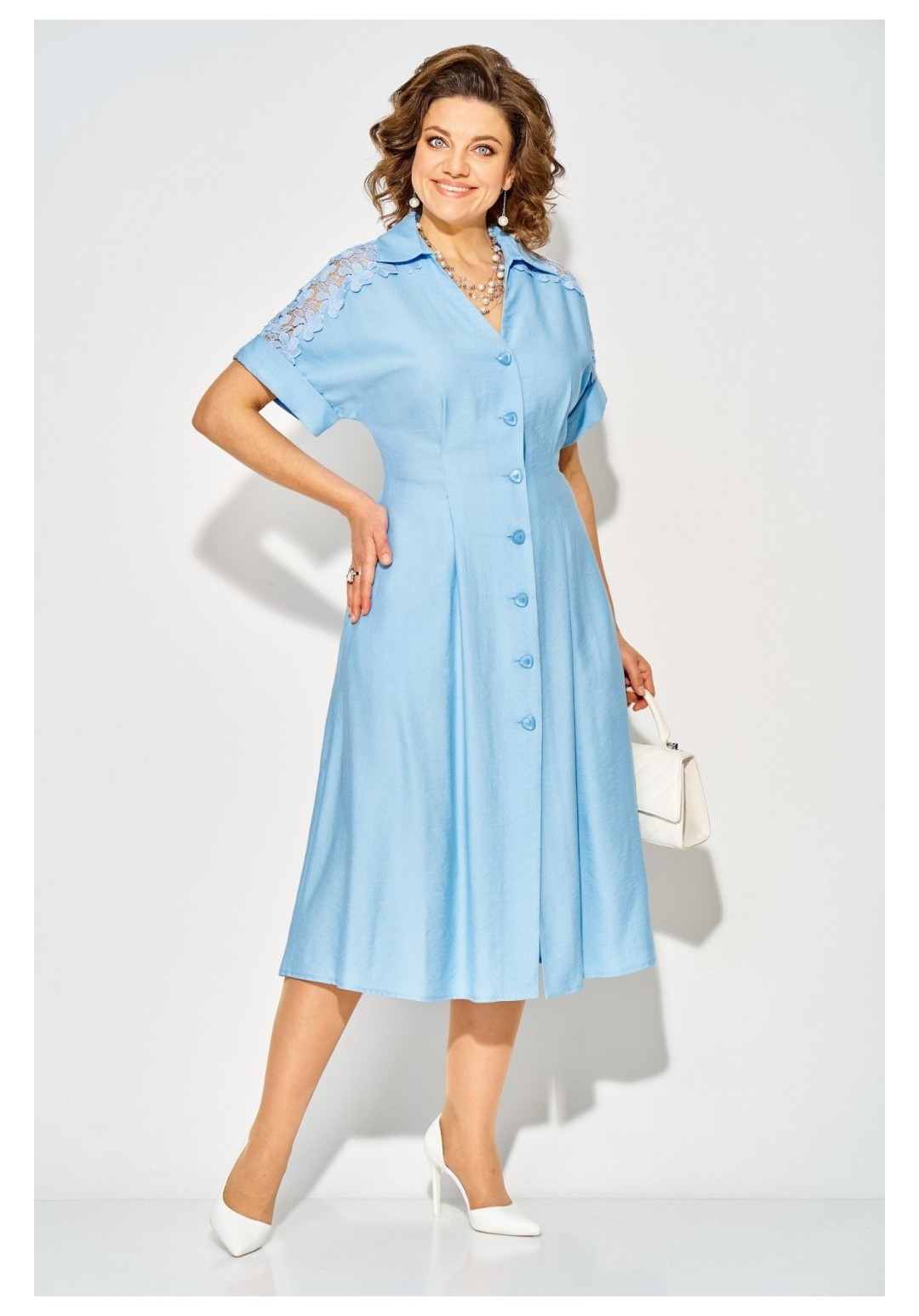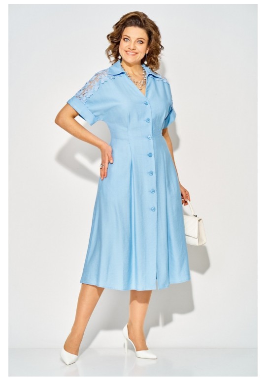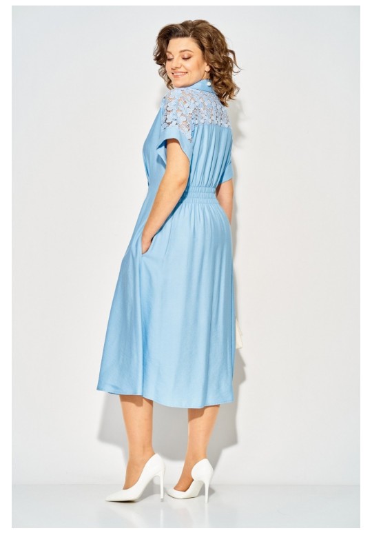 Платье 1519 Liliana-style очаровывает своим весенне-летним исполнением из вискозного полотна с хлопковым кружевом. Коллекция бренда Liliana-style предлагает это полуприталенное платье с V-образным вырезом и отложным воротником. Центральная застежка на пуговицы дополняет его утонченность. Декоративные складки и резинка на спинке создают комфортное прилегание. Голубой цвет и длина по спинке около 126 см делают это платье идеальным для отдыха и романтических встреч в теплое время года. Спущенный рукав и вставки из кружева подчеркивают изысканность модели, дополняя её универсальность для множества случаев.