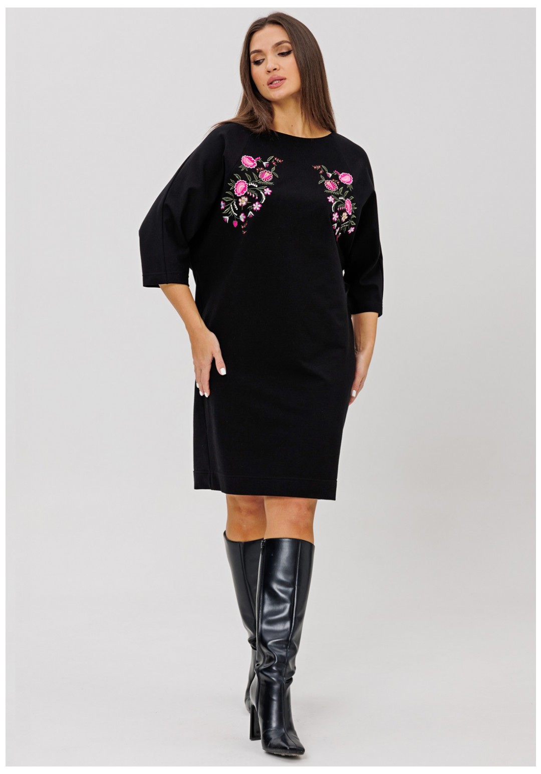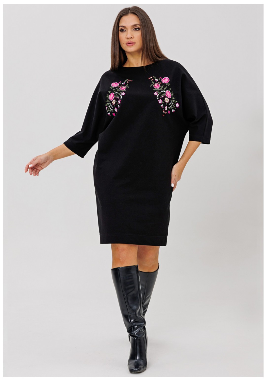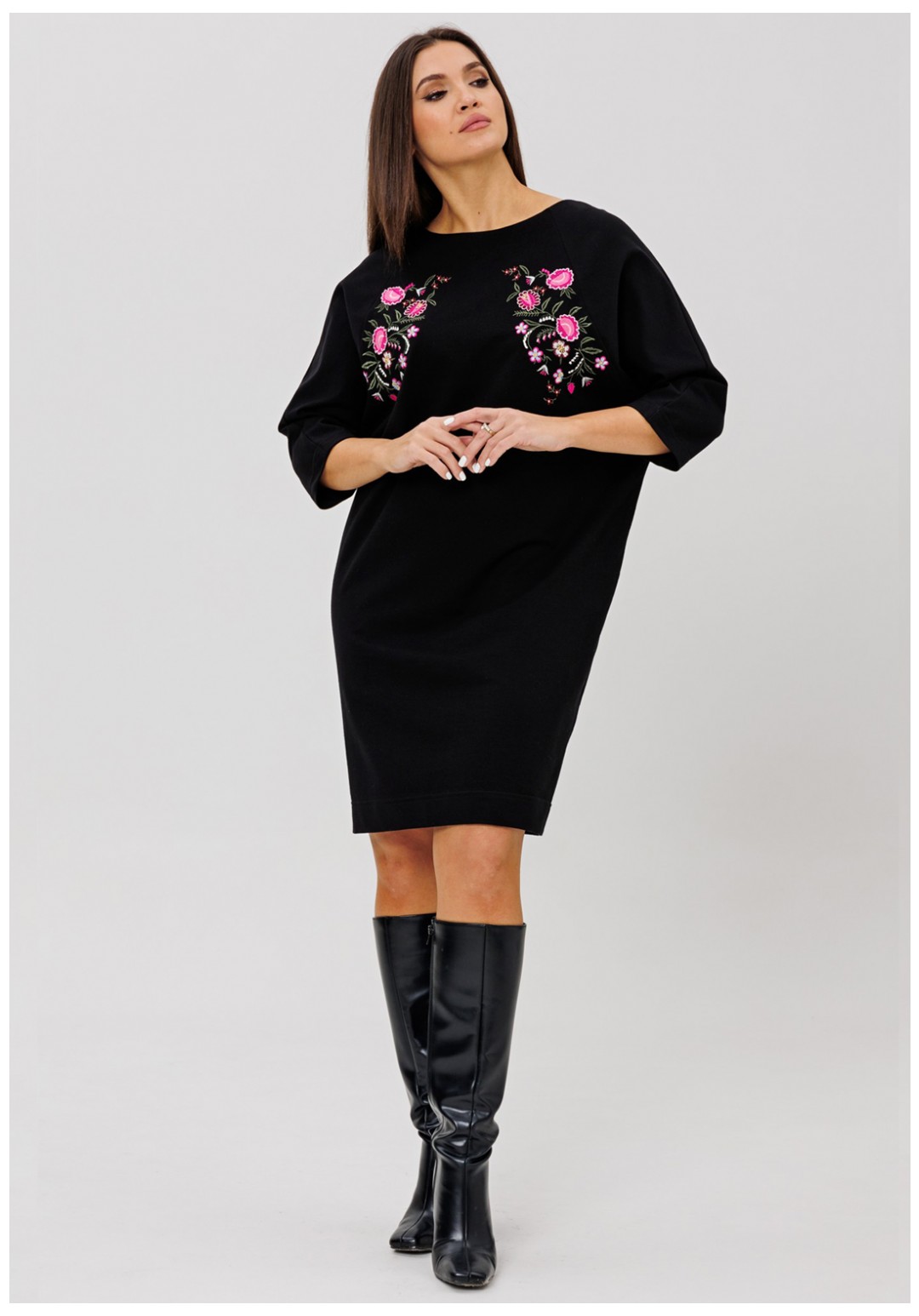 Перед цельный с декоративной дизайнерской вышивкой. Горловина - лодочка, обработана обтачкой. Спинка со средним швом. Рукав полуреглан.