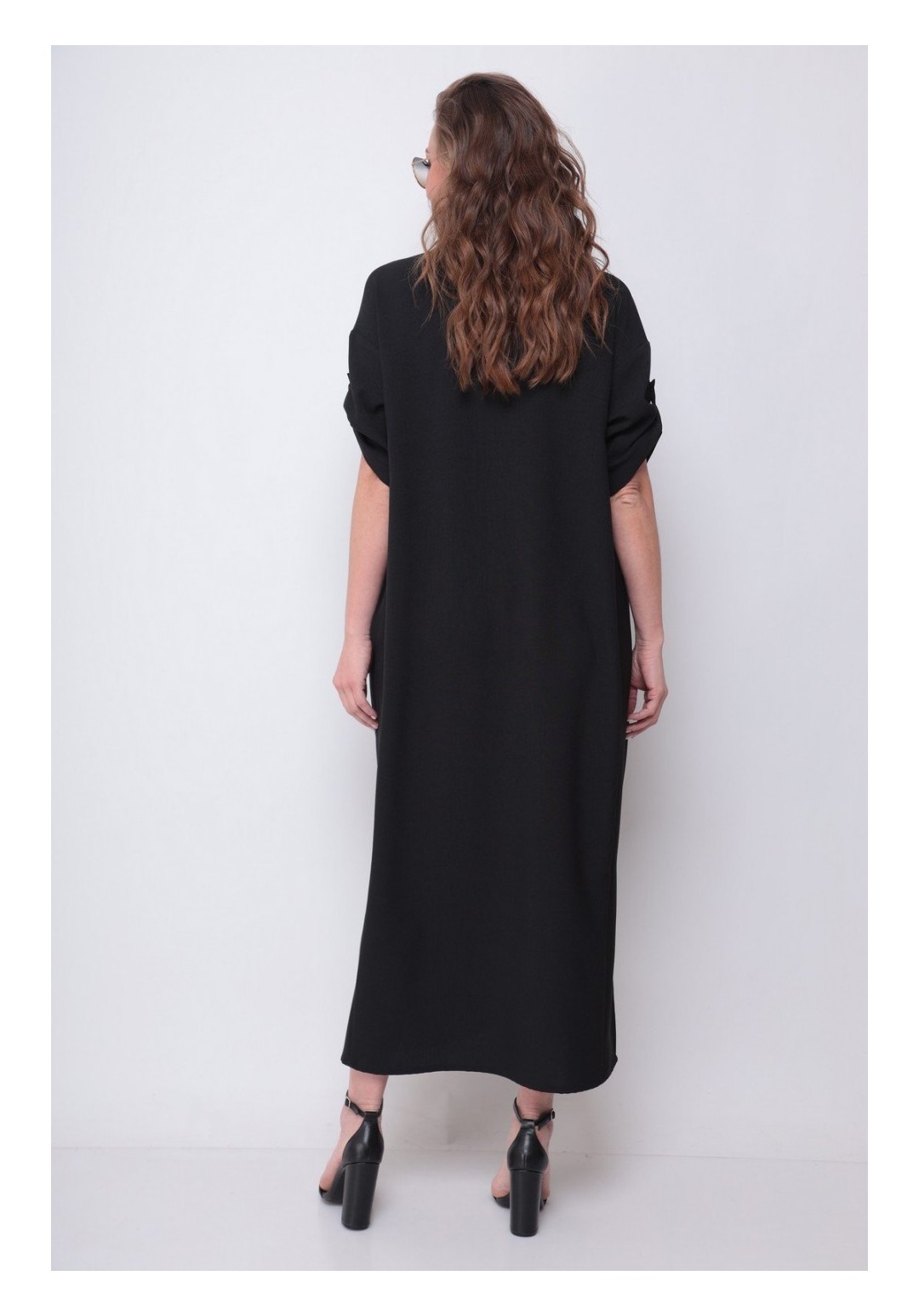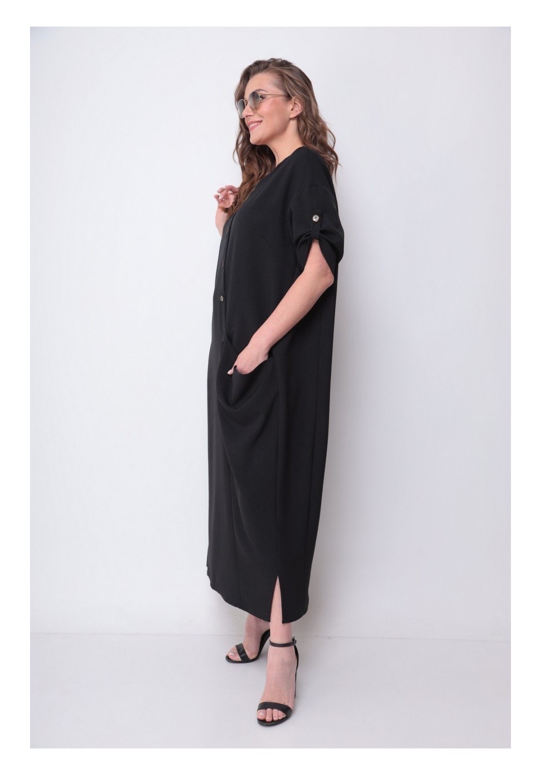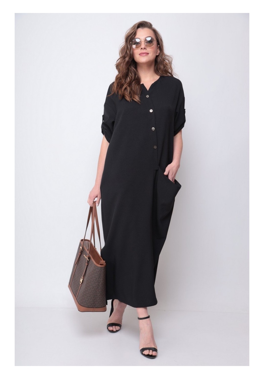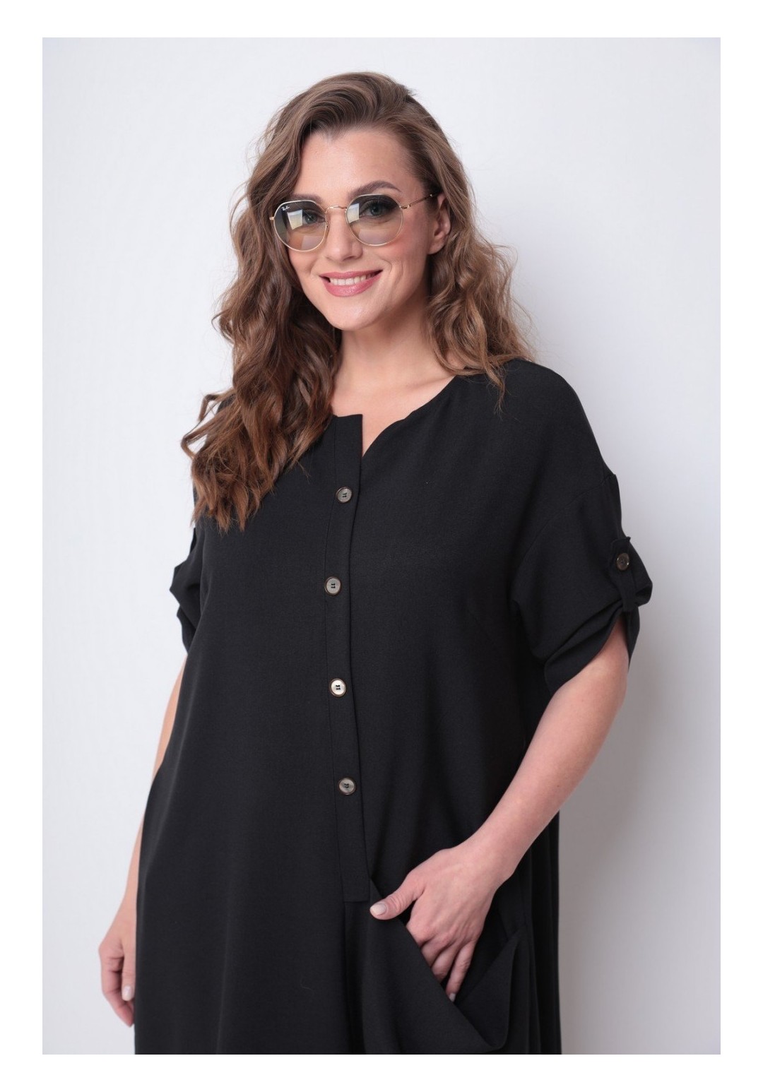 Повседневное платье в стиле бохо, выполнено из искусственного льна-вишера. Струящаяся по фактуре ткань, благодаря свободному прилеганию, создает кокон оберегающий от зноя и палящего солнца. Короткий рукав, который можно регулировать хлястиком на пуговице. Ассиметричная, функциональная застежка переходит в драпирующийся карман, с противоположной стороны карман спрятан в боковой шов. По бокам изделия разрезы. Изделие может сочетаться как с кедами, босоножками, так и туфлями. Универсальность и практичность платья сделают его любимым в Вашем гардеробе в наступающем летнем сезоне. Длина по спинке 128 см, длина рукава 26 см. Изделие подойдет на рост 170 см