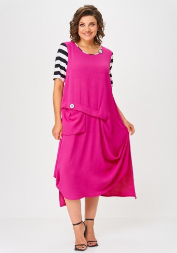 Актуальное длинное платье оригинального свободного кроя — отличное решение для межсезонной погоды, для будней и для торжеств. Изделие выполнено из легкой струящейся ткани — лен вишер. Верх изделия с завышенной талией, округлой горловиной и втачным укороченным рукавом. Верх горловины на спинке украшен завязкой. Низ платья свободного летящего кроя с боковыми карманами, по талии сборка. Изделие украшено небольшой нашивкой на талии. Длина рукава 45 см (+/-1 см). Длина по спинке 127 см (+/-1 см). Изделие подойдет на рост 170 см.