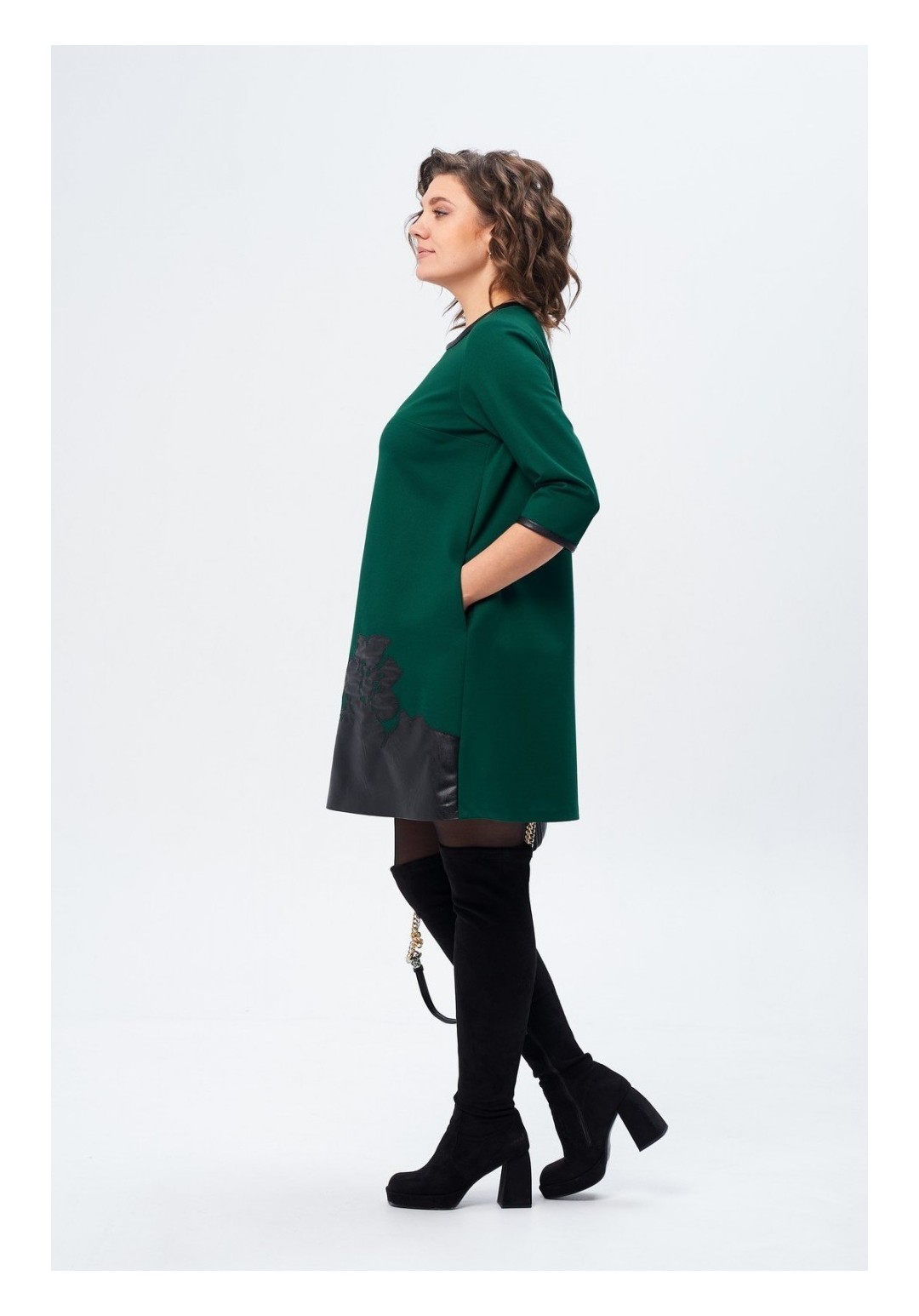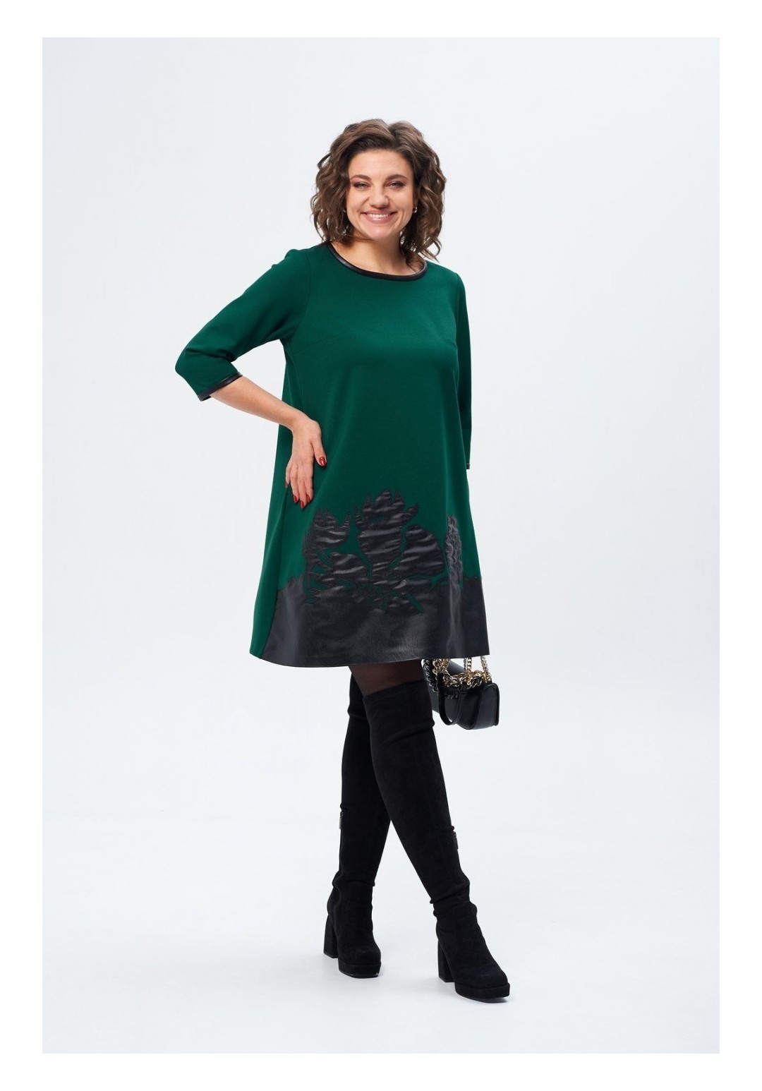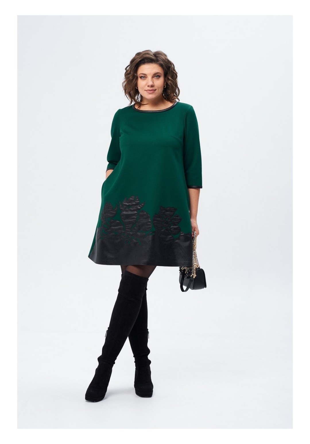 Универсальное женское платье, которое смело можно носить как в офис, так и на торжество. Выполнено из текстильной ткани, украшенного настрочной вышивкой цветы из эко кожи. Платье трапецевидного силуэта, длиной выше колена, с втачным рукавом 3/4. Спинка цельная с застежкой в горловине на декоративную молнию. Низ рукава и горловина обработаны бейкой из эко кожи. Платье подчеркнет Ваши достоинства и не будет сковывать движения. Оно прекрасно дополняется различными аксессуарами. Длина изделия по спинке 93см+-1 см, длина рукава от плечевого шва 45см+-1 см. Изделие подойдет на рост 170см.