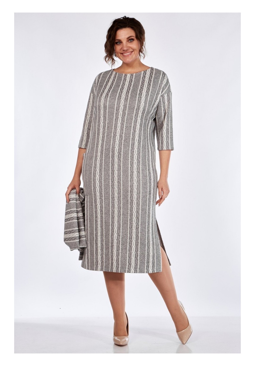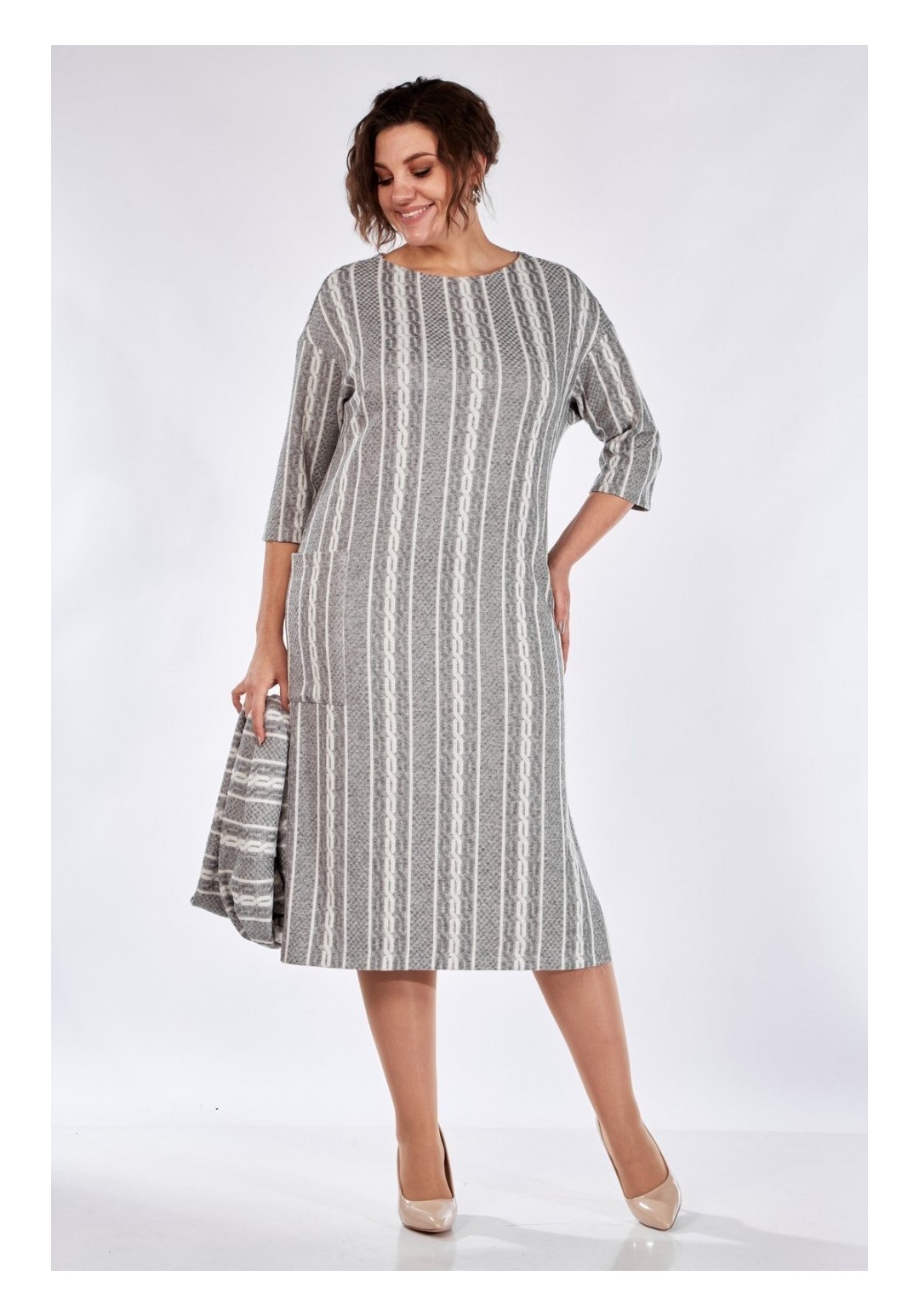 Эффектное, вместе с тем, прекрасно подходящее для повседневной жизни платье. Комфортный, прямой силуэт мягко сядет по фигуре и не будет сковывать Ваших движений. Платье выполнено из приятного на ощупь трикотажа средней плотности. Изделие имеет спущенный рукав длиной 3/4 и округлую горловину. Украшением платья служит элегантный боковой разрез с одной стороны и накладной карман с другой. В комплекте к платью прилагается снуд из основного материала, который украсит платье и согреет Вас. Платье прекрасно сочетается разной по стилю обувью. Длина по спинке 116 (± 2 см), длина рукава от горловины 50 (± 2 см). Изделие подойдёт на рост 170 см.