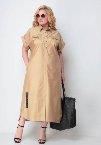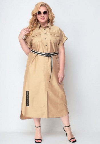 Универсальное платье в стиле casual. Изделие выполнено из приятной на ощупь костюмно-плательной ткани средней плотности. Платье свободного прямого кроя, перед и спинка цельнокроеные, спинка длиннее переда. Горловина с рубашечным воротником и V-образным вырезом. Плечо спущенное, рукав втачной длиной 3/4, застегивающийся на пату и пуговицу. По верху спинки имеется стачная встречная складка, благодаря которой имеется небольшое клешение. По переду снизу платье украшено принтом. В боковых швах имеются карманы, а также боковые разрезы. Платье дополнено поясом, с помощью которого можно обыграть образ, пояс идет в комплекте. Изделие может сочетаться как с кедами, лоферами, так и босоножками, туфлями. Универсальность и практичность платья сделают его любимым в Вашем гардеробе. Длина по спинке 123+-1см, длина рукава 49+-1см. Изделие подойдет на рост 170 см.