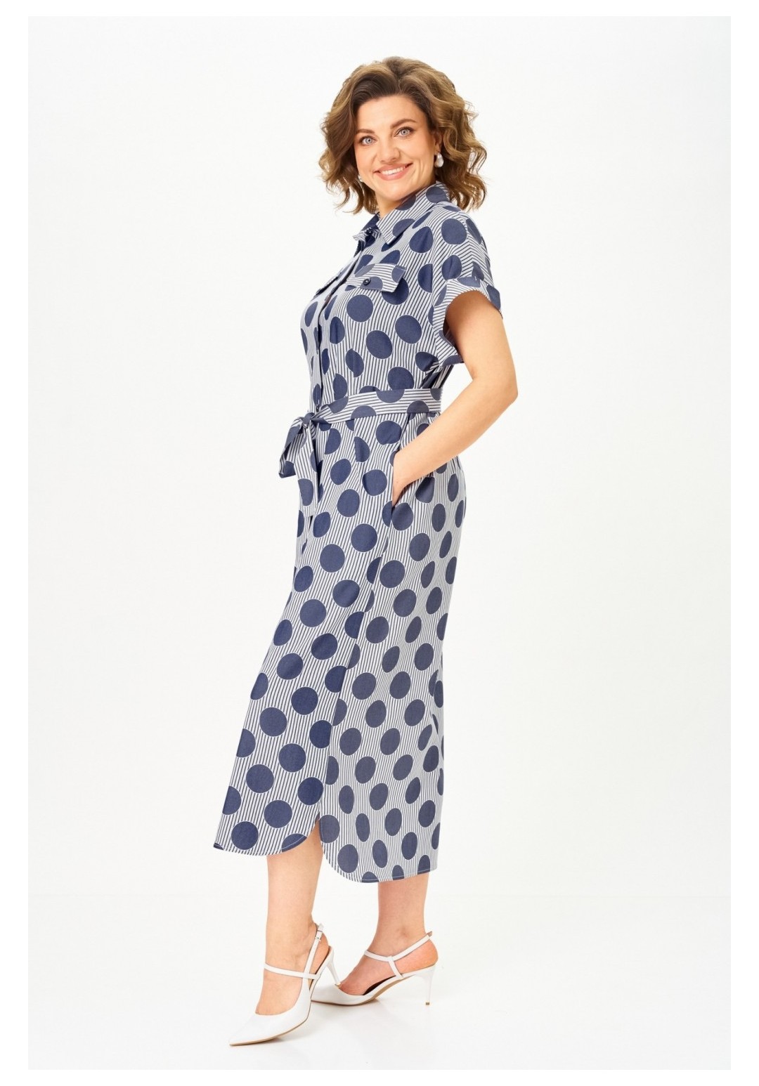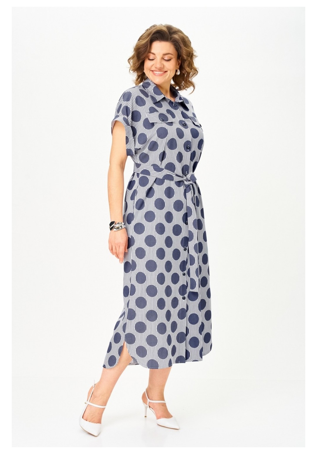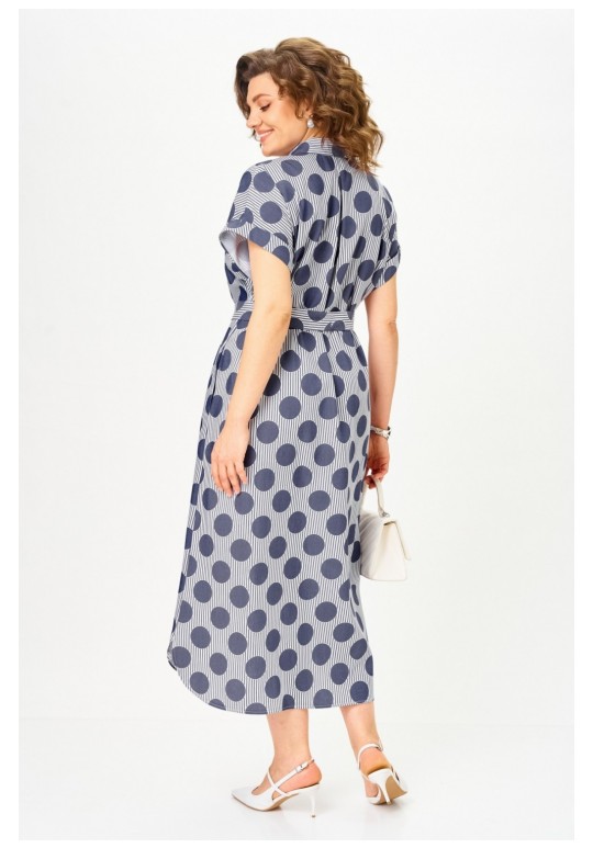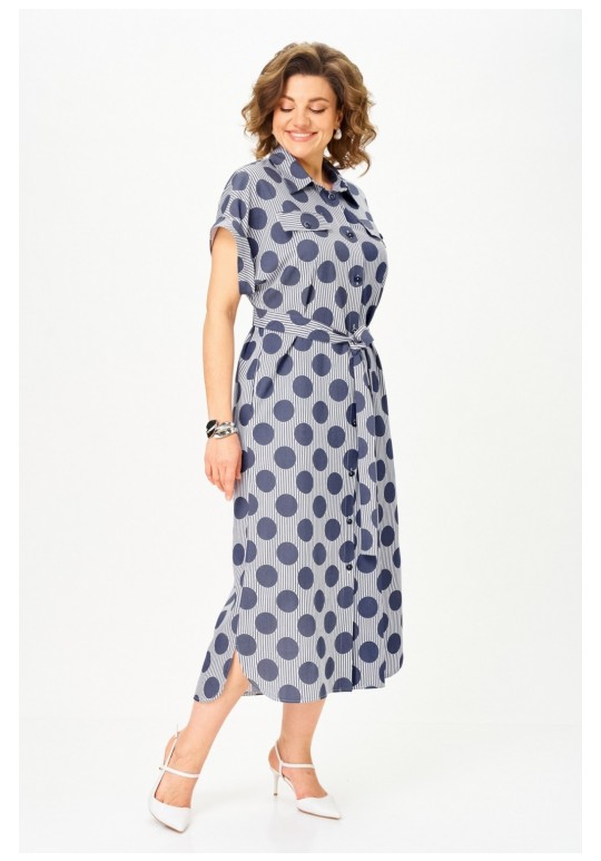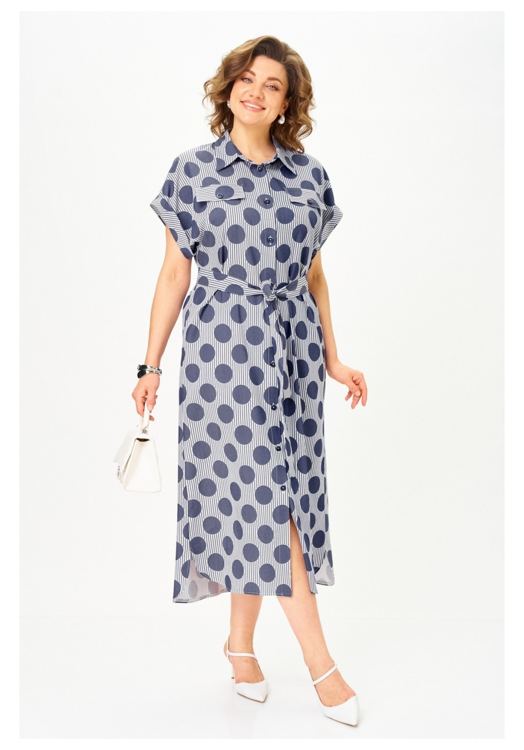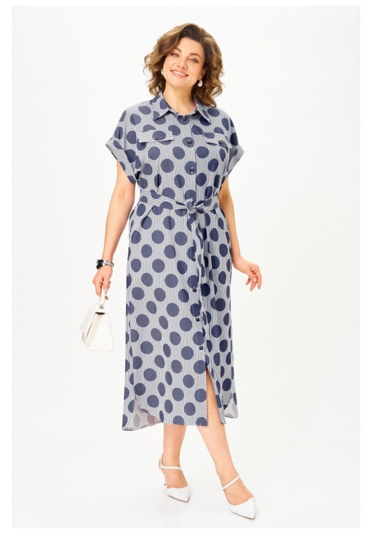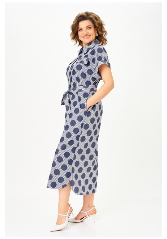 Платье 993-3 крупный горох Michel Chic сочетает стиль и удобство. Коллекция бренда Michel Chic предлагает универсальный выбор для тёплого сезона. Изготовлено из тонкого денима, материал обеспечивает комфорт и лёгкость в носке. Свободный крой позволяет скрыть нюансы фигуры, а пояс подчёркивает талию. Платье-рубашка украшено актуальными принтами полоска и горох, что визуально вытягивает силуэт и придает современный вид. Длина по спинке составляет 130 см, что делает его подходящим для роста 170 см. Эта модель идеально подходит как для повседневных прогулок, так и для работы. Темно-синий цвет в сочетании с белыми элементами подходит для различных аксессуаров и обуви.