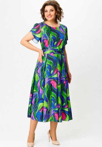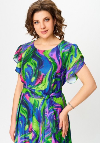 Это очаровательное летнее платье из штапеля, идеально подходит для жарких дней. Оно выполнено в нежном желтом цвете с изящным цветочным принтом. Модель имеет приталенный силуэт с расширением к низу и отрезную линию талии. На спинке у платья предусмотрена застежка на молнию. Элементы декора включают небольшую сборку на груди, а также оригинальный волан-баска на бедрах, который гармонично переходит на спинку. Воротник-стойка с элегантной завязкой и вырезом капелькой добавляют изысканности, а дополнительным шармом служат рукава-воланы двойной длины, создающие легкий и воздушный образ.