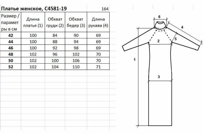 Платье второго слоя одежды, цельновязанное, немного расширено на бедра, с длинным рукавом реглан-пагон, с воротником высотой 13,5 см. Низ стана и рукава заработтан ластиком 1х1.