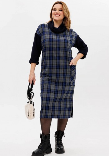 Стильное платье прилегающего силуэта, отрезное по линии талии, выполнено из экокожи и трикотажного полотна. Горловина округлой формы. Длинные втачные рукава. Юбка спереди с подрезом на металлическую молнию, с возможностью регулировать высоту разреза. Застёжка по спинке в среднем шве на потайную молнию.