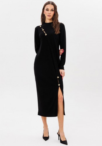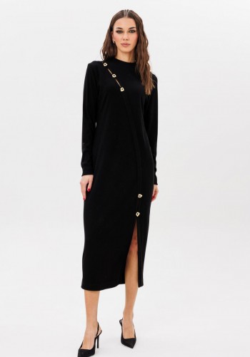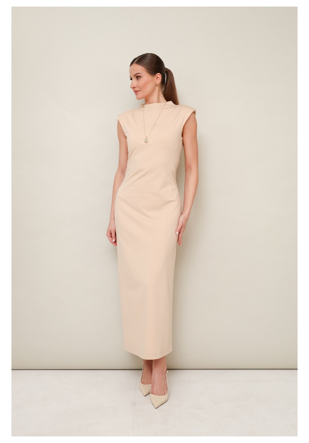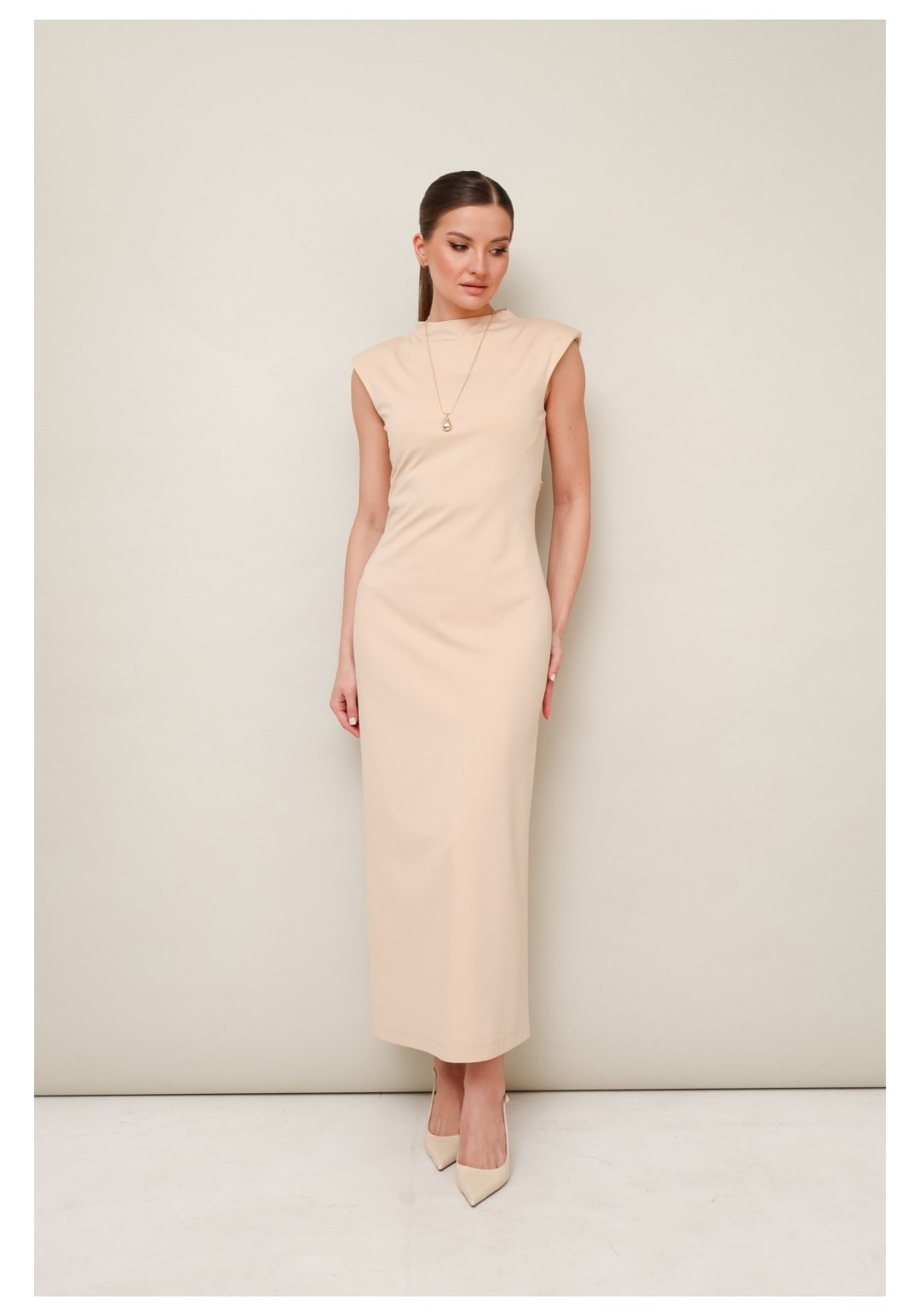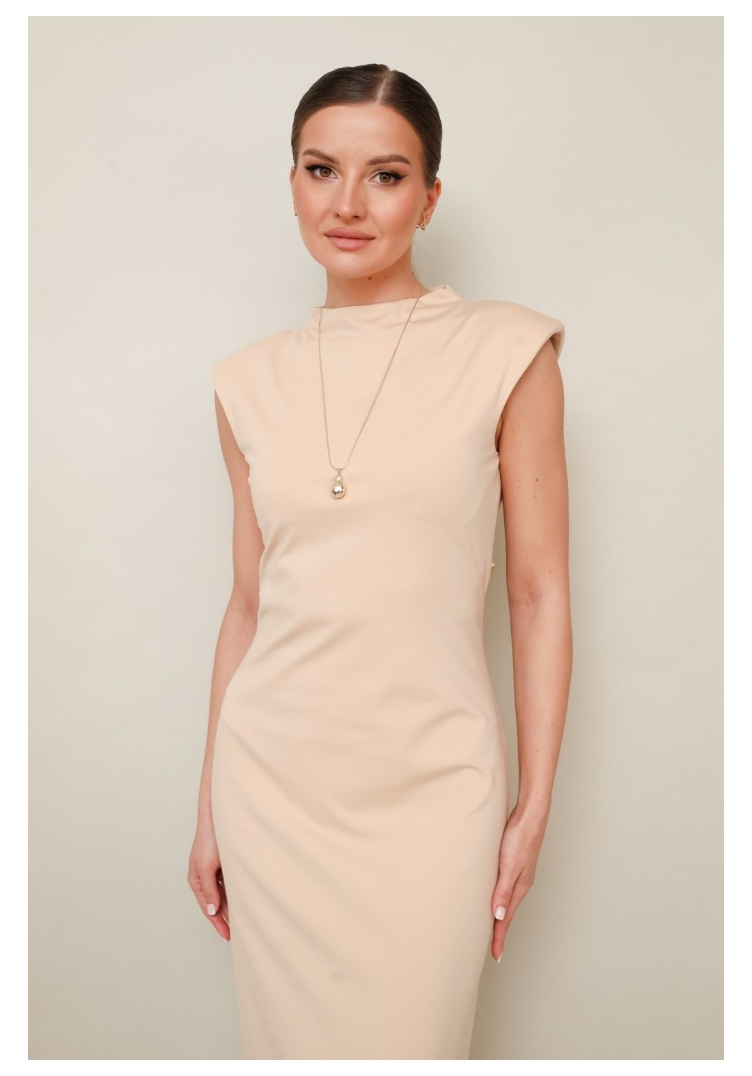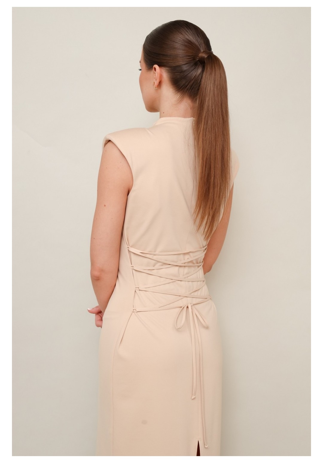 Платье 11-489 Pur Pur привлекает внимание своим элегантным дизайном. Коллекция бренда Pur Pur предлагает это миди-платье прилегающего силуэта, выполненное из комфортной трикотажной ткани. Платье оснащено цельнокроеной горловиной со стойкой и декоративной шнуровкой на спинке, позволяющей регулировать прилегание по талии. Потайная молния обеспечивает удобство надевания, а задний разрез добавляет свободы движений. Нейтральный бежевый цвет идеально подходит для разнообразных вариантов ношения — от офисного стиля до вечерних выходов. Это платье станет отличным дополнением в вашем гардеробе для каждого сезона.